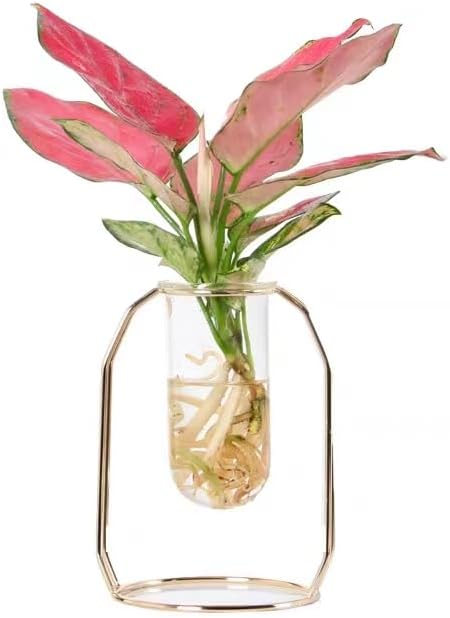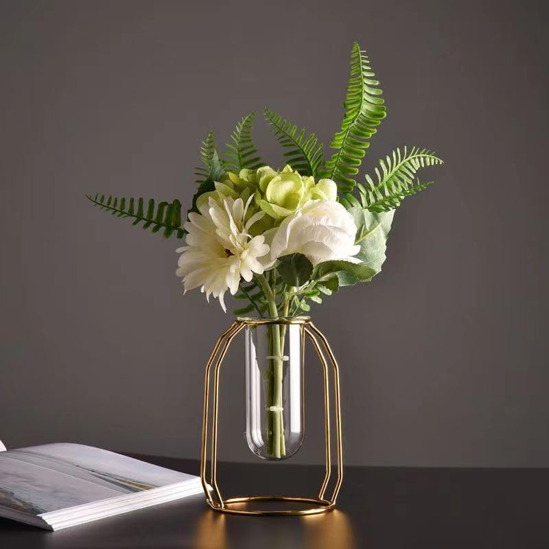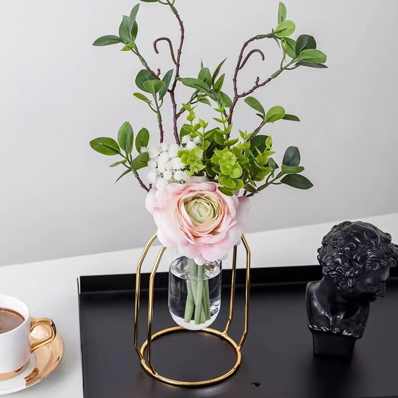 Geometric Vase: geometric metal stand desktop hydroponic plants glass vase, cylindrical transparent vase decorative flowers, vase glass planter test tube vase decoration
