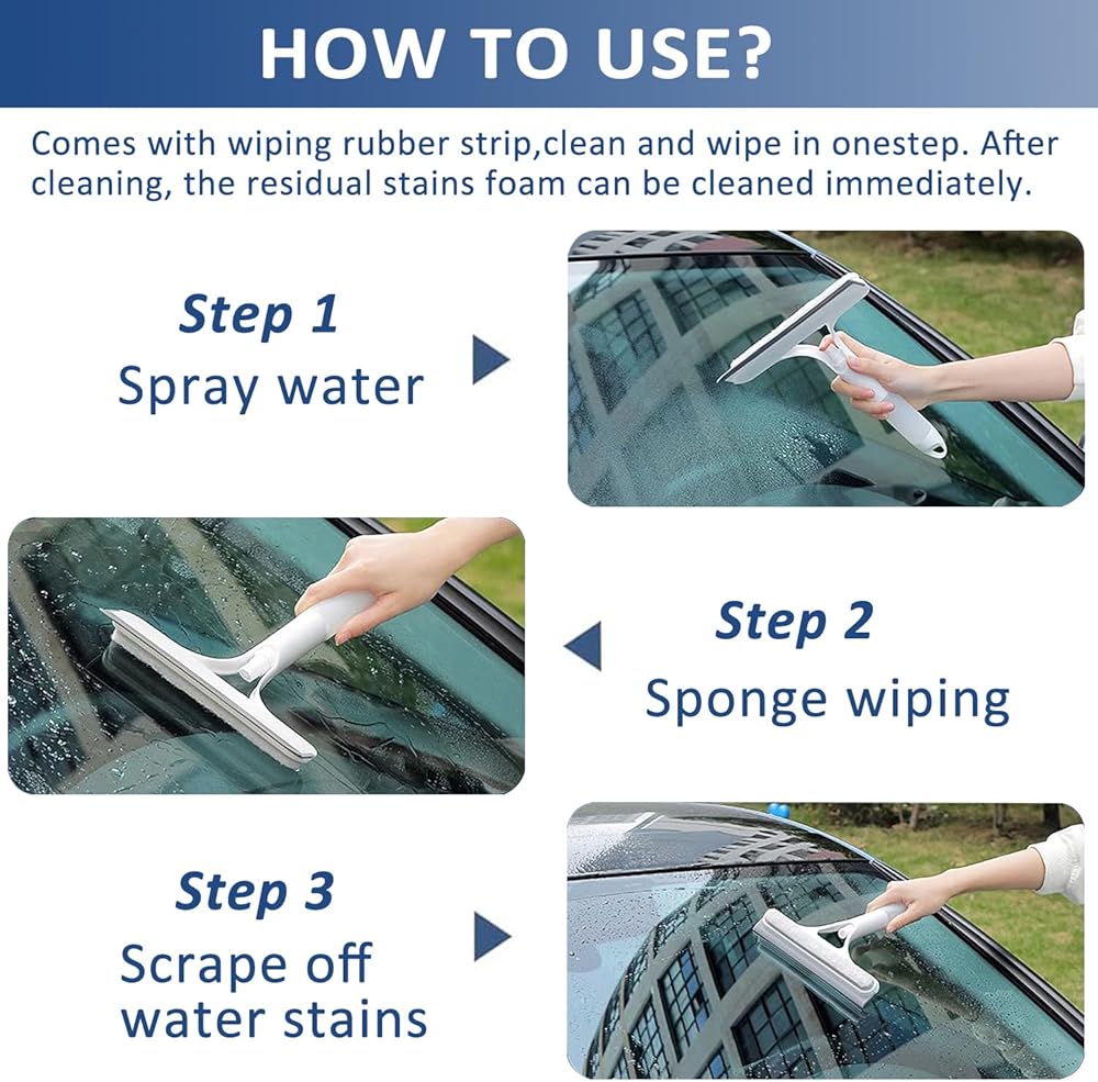 【Easy to Use and Storage 】Comes with 2 pack of 3 Functions in 1 Squeegee,Ready to use with no need for complex operations. The hanging handle design is very convenient for storage. After cleaning, simply hang it on the hook.
