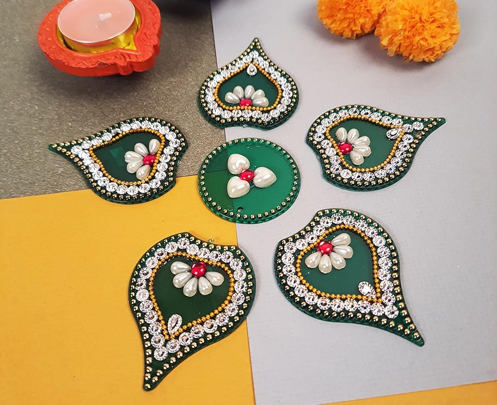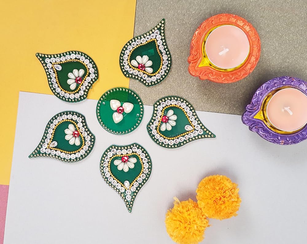 • Multiple attractive designs possible. Beautiful set of rangoli is hand made and finely crafted. Decorated with colorful and attractive multi-color stones.Must have in festive seasons. New Concept in Rangoli and Festive Home Décor - You can make your home unique and gorgeous in a matter of minutes