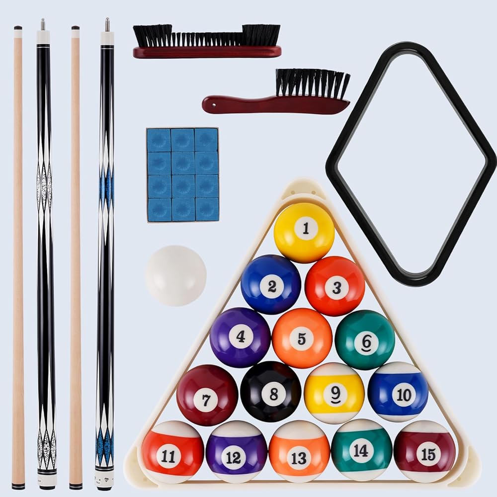 ملحقات طاولة حمام السباحة الفاخرة من JIAWANSHUN، مجموعة 16 كرة مع عصاين لحمام السباحة، وإكسسوارات البلياردو مع حامل كرة مثلث وماس، مجموعة فرشاة طاولة حمام السباحة