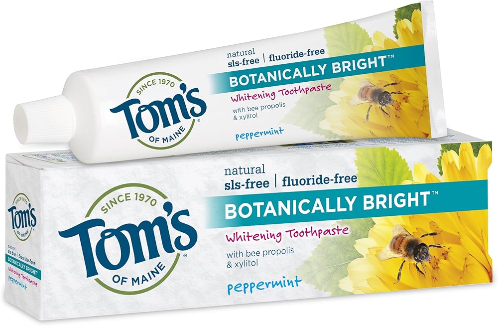 - Tom's Of Maine Sls-free fluoride-free Botanically Bright Whitening Toothpaste Peppermint.