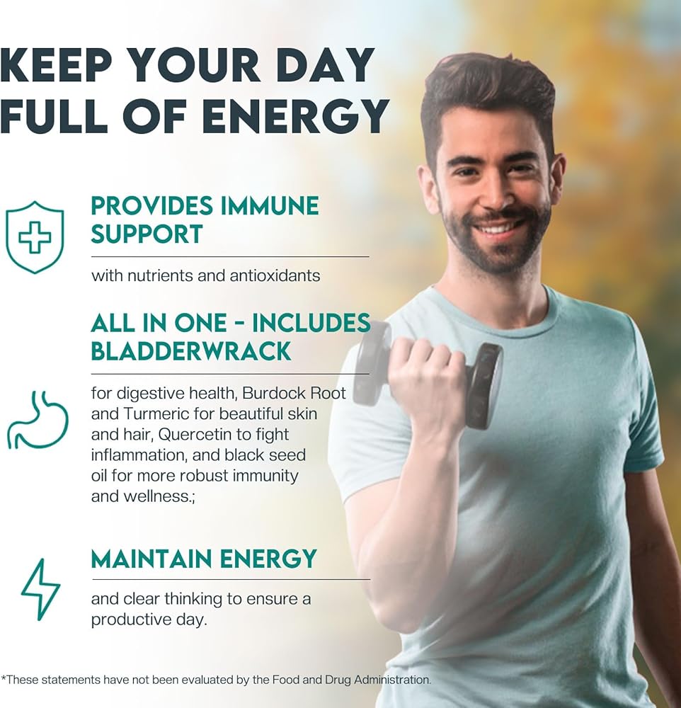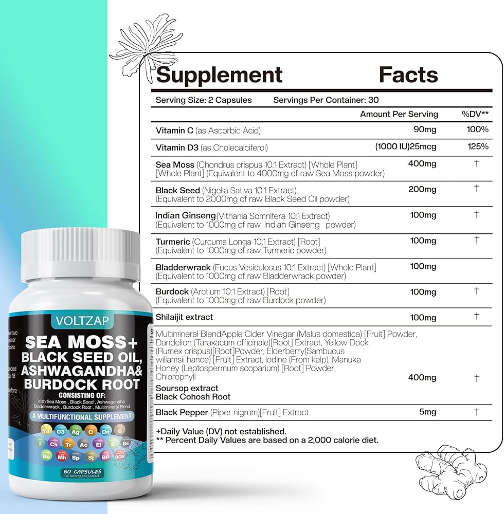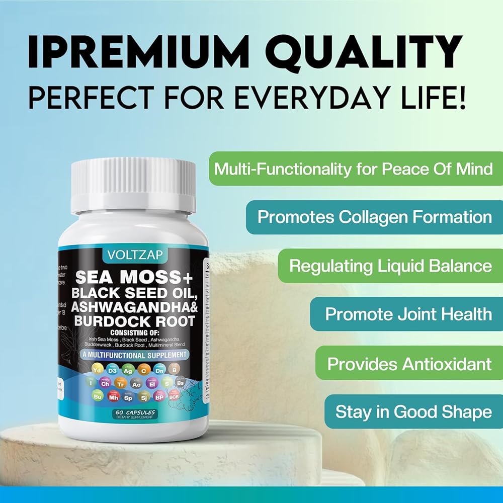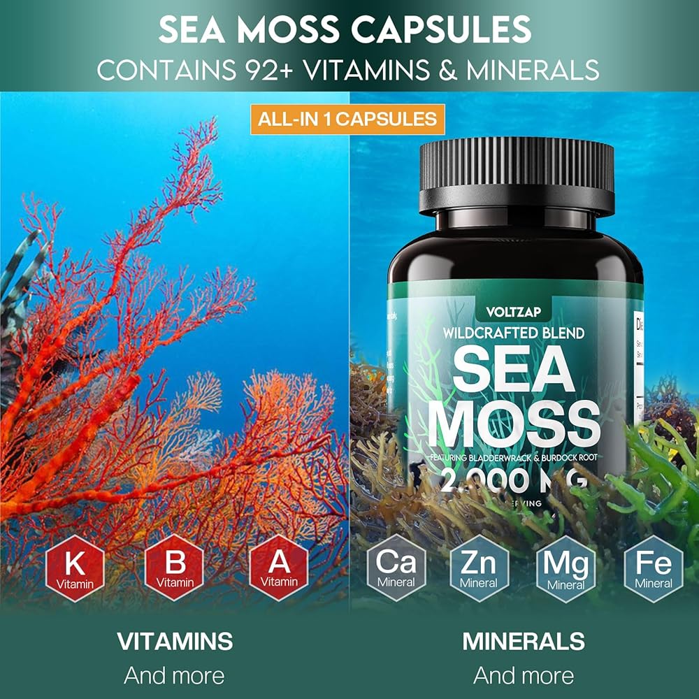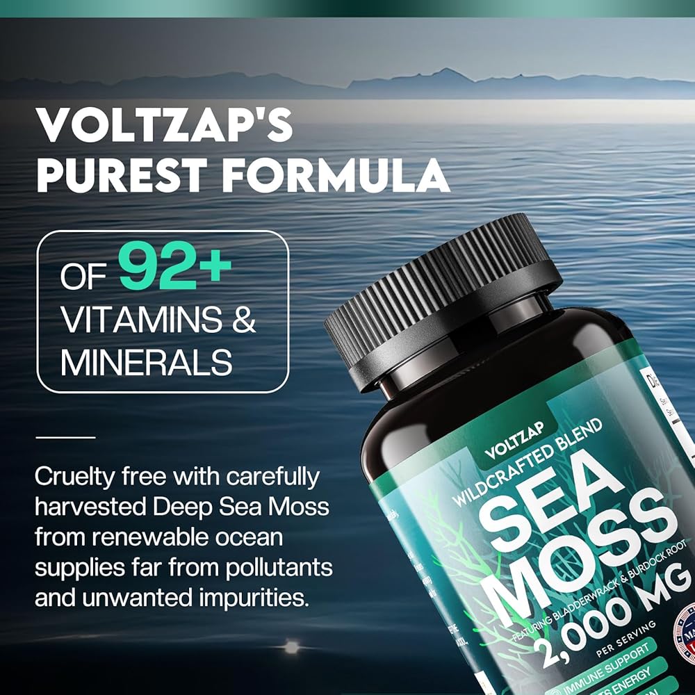 المواد العضوية الخام: كبسولات خام طحالب البحر من فولتزاب مصنوعة بنسبة 100% من البحر بدون موانئ أو تلوث صناعي. تحتوي كل كبسولة على مستخلص طحلب البحر الأيرلندي (أي ما يعادل العديد من طحالب البحر)، ومستخلص المثانة (أي ما يعادل العديد من أعشاب المثانة)، ومستخلص جذر الأرقطيون (أي ما يعادل العديد من الأرقطيون)، مما يوفر تعزيزًا شاملاً لوظيفة الإنسان والصحة العامة.
