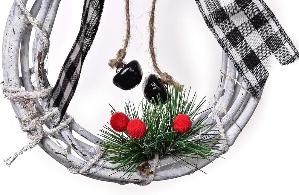 ❉🎄🎅【Comes with LED Lights】-- A battery operated copper string lights (battery not included) can be wrapped on this grapevine wreath, bringing festive radiance to any indoor or outdoor Christmas display.
