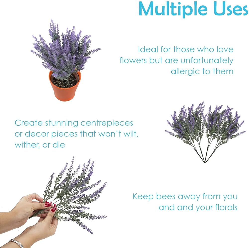 مثالي لجميع المناسبات - يُعد ترتيب الزهور الصناعية الخاص بنا مثاليًا لحفلات الزفاف، وديكور المنزل، وديكور المكتب، وغير ذلك الكثير. اللافندر هو الزهرة المثالية للاستخدام على مدار العام، لذلك لا يتعين عليك استبدالها مع تغير الفصول.
