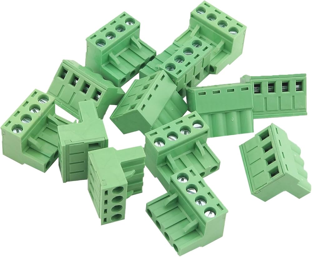 15 قطعة موصل طرفي برغي 4 دبوس 5.08 مم درجة PCB 300 فولت موصل طرفي قابل للتوصيل باللون الأخضر للساعات الإلكترونية الصغيرة والآلات الحاسبة وأجهزة الاتصالات الإلكترونية