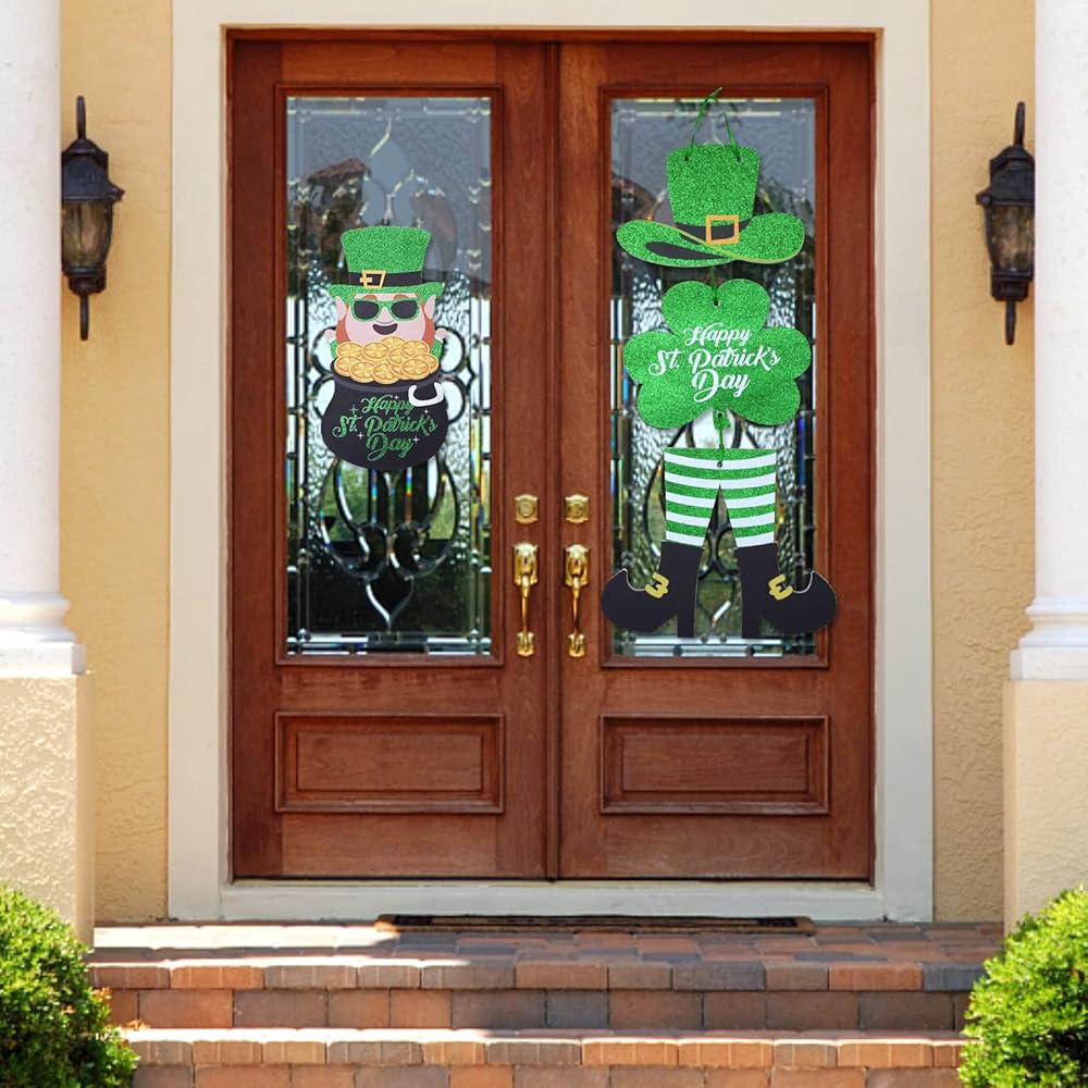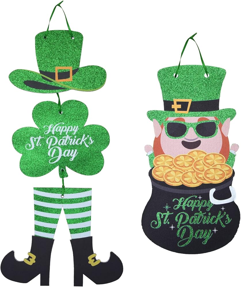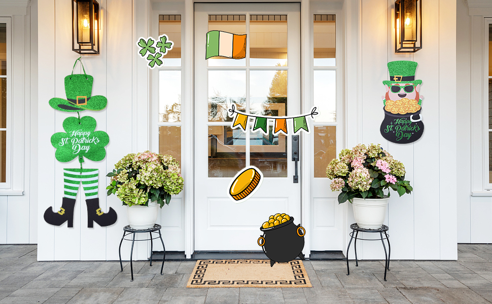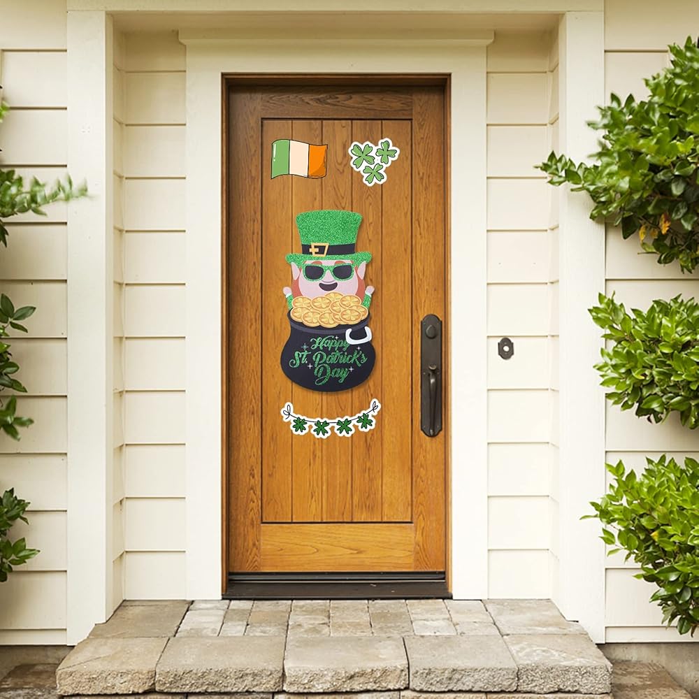 هدية عيد القديس باتريك: St. يمكن تعليق إكليل باب عيد القديس باتريك أفقيًا أو يمكنك تفكيك علامة الترحيب وتعليقها على الحائط بشكل منفصل لتزيين العطلات لجعل أصدقائك وعائلتك مليئين بالحب والحظ في عيد القديس باتريك.