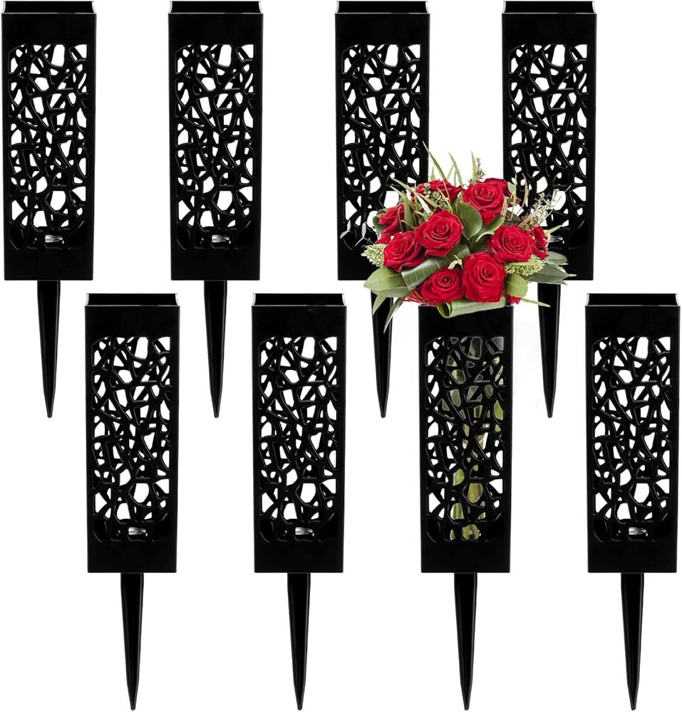 Value Package - Set of 8 cemetery vases, each vase measures 2.37"L x 2.37"W x 11"H. Designed to be left at memorial sites, our cemetery vases are a beautiful way to leave a loving tribute for your loved one.