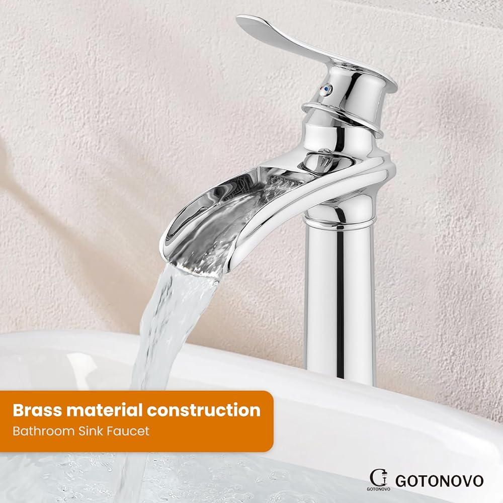 [مادة صنبور حوض الحمام الطويل]: عزز حمامك مع صنبور حوض شلال غوتونوفو. صنبور حوض الحمام الطويل هذا المثبت على سطح الحمام هو مقبض حديث من النحاس والكروم البولندي مقاوم للتآكل ويمنع فقدان البريق.