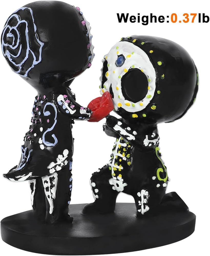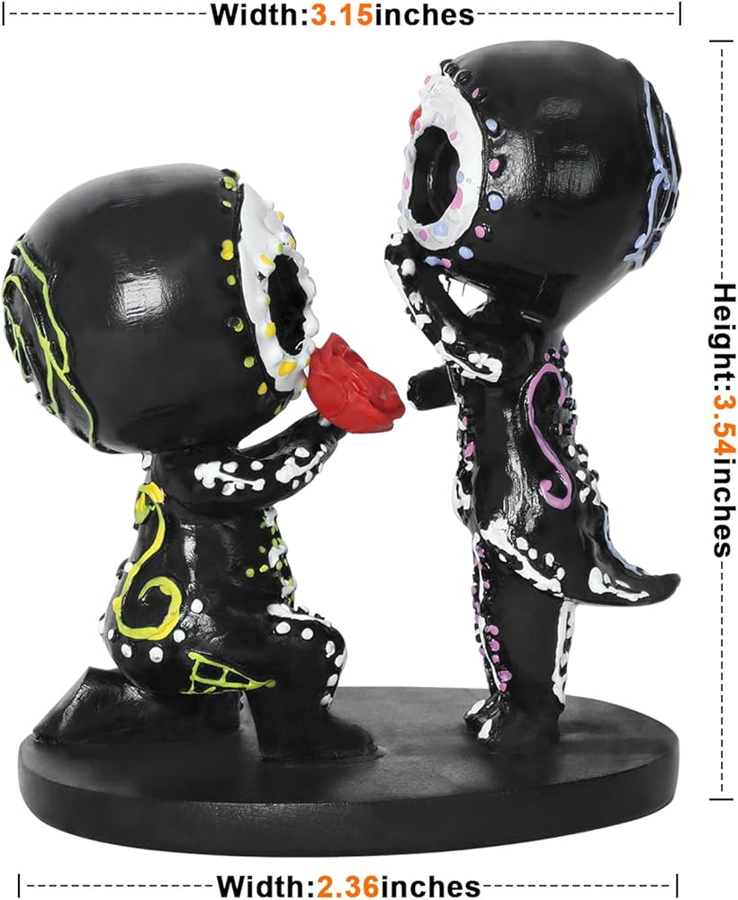 Size:Mothers Day Gifts sugar skull couple figurine ‘s size is About 3.9inch, width about 2 inch.You can place it on your desktop or shelf at will