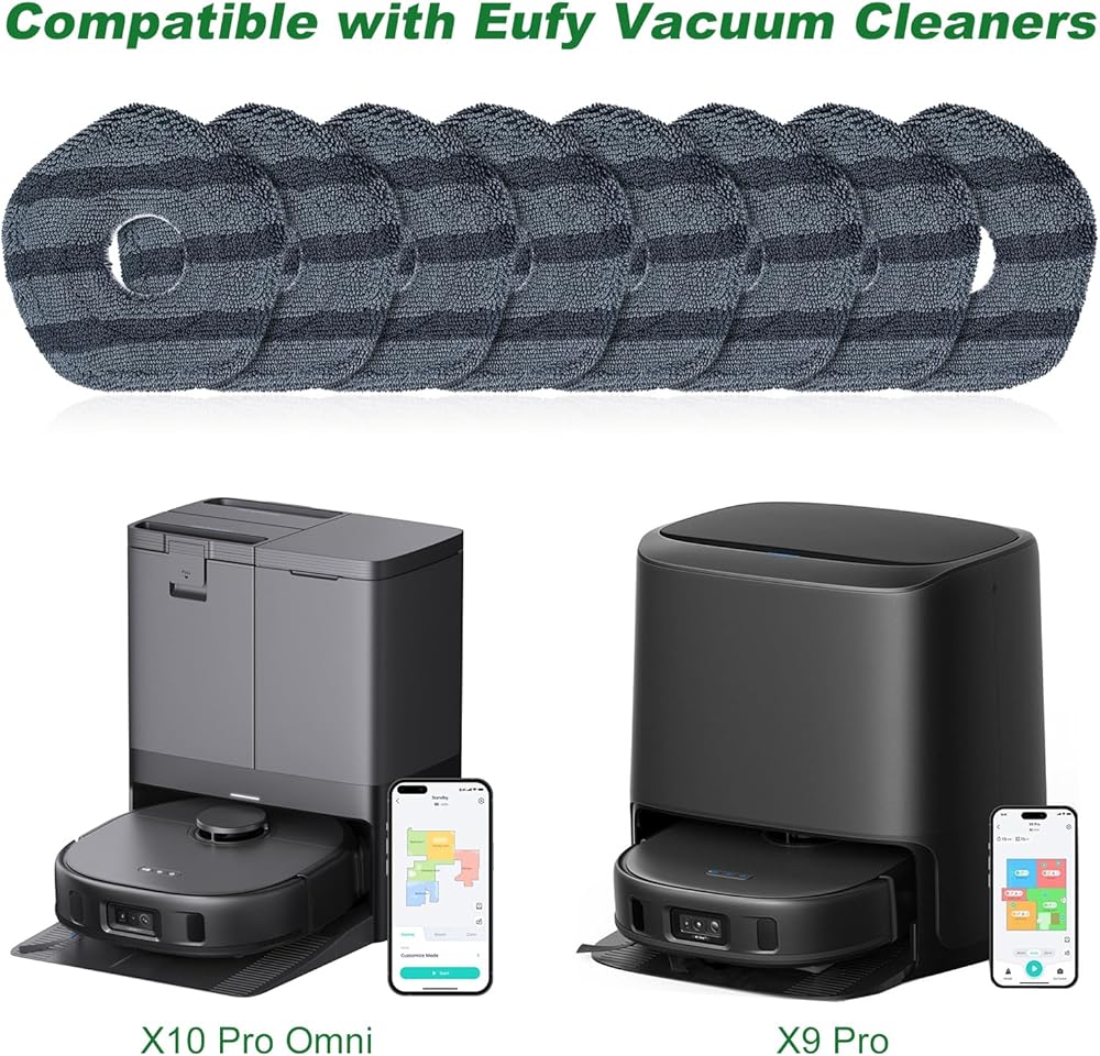 • 【متوافقة على نطاق واسع】 تعتبر وسادات الممسحة الناعمة البديلة هذه مناسبة تمامًا للمكانس الكهربائية الروبوتية Eufy X10 Pro Omni/X9 Pro، يرجى التحقق من طراز الجهاز الخاص بك قبل الشراء.