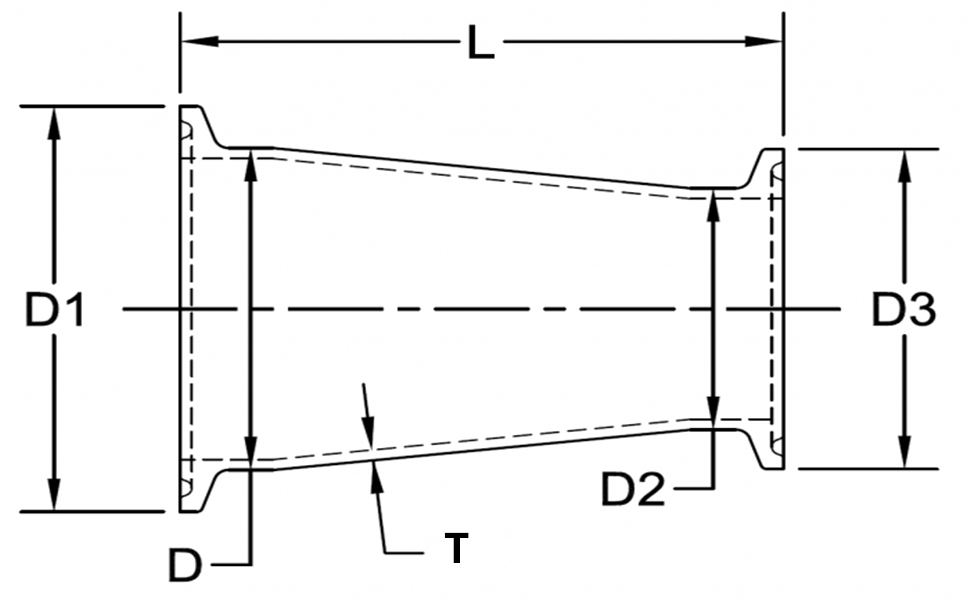 جوين الصحية 4in.x2in. مخفض متحد المركز ثلاثي المشبك لـ Kegmenter 4 "أنبوب OD إلى 2" أنبوب OD SS304 من الفولاذ المقاوم للصدأ