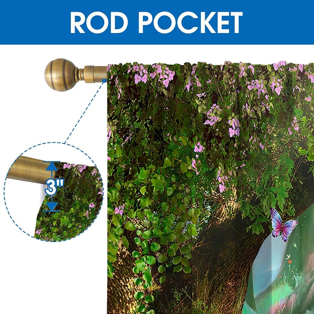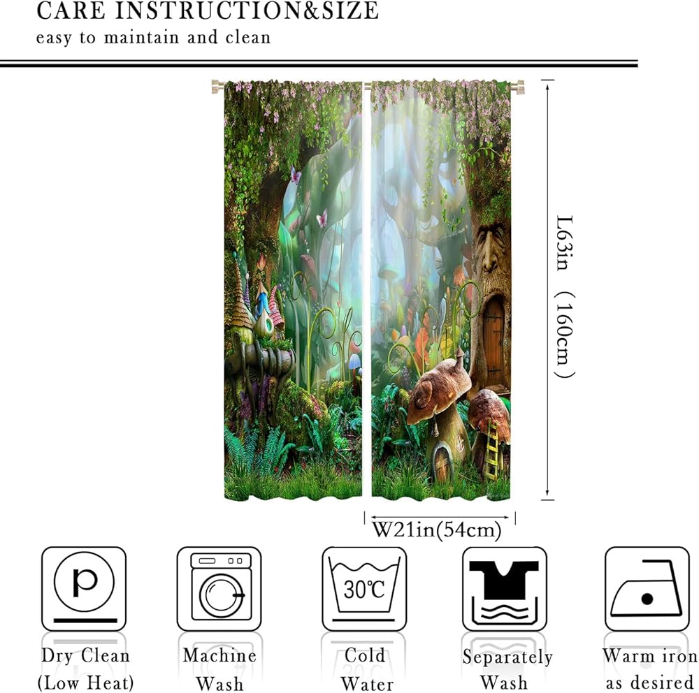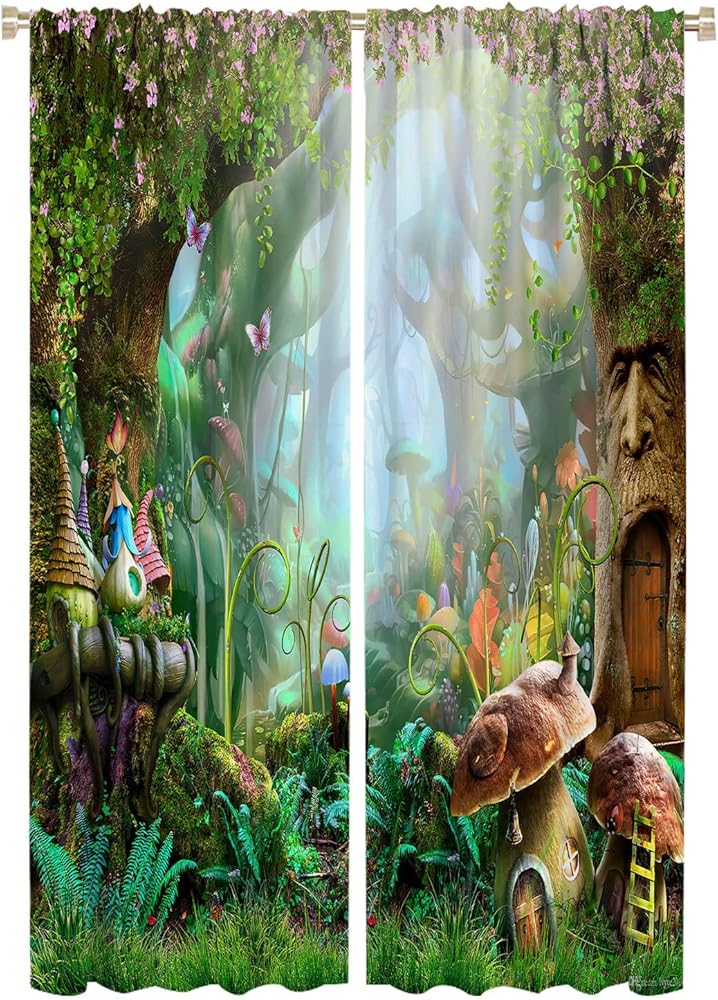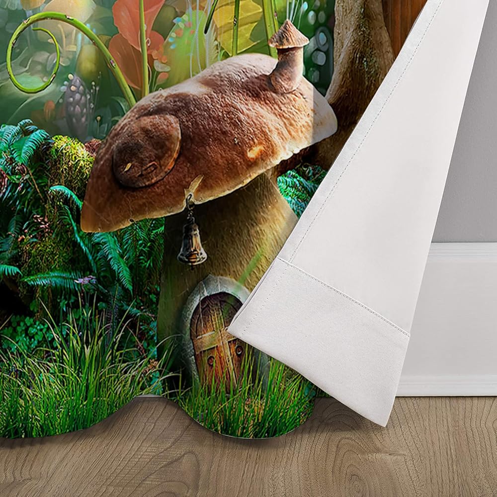 【Cartoon Fairy Tale Forest Blackout Curtains】Cartoon Fairy Tale Forest Blackout Window Curtain Fantasy Spring Mushroom Thermal Insulated Blackout Curtains for Living Room Bedroom Decor