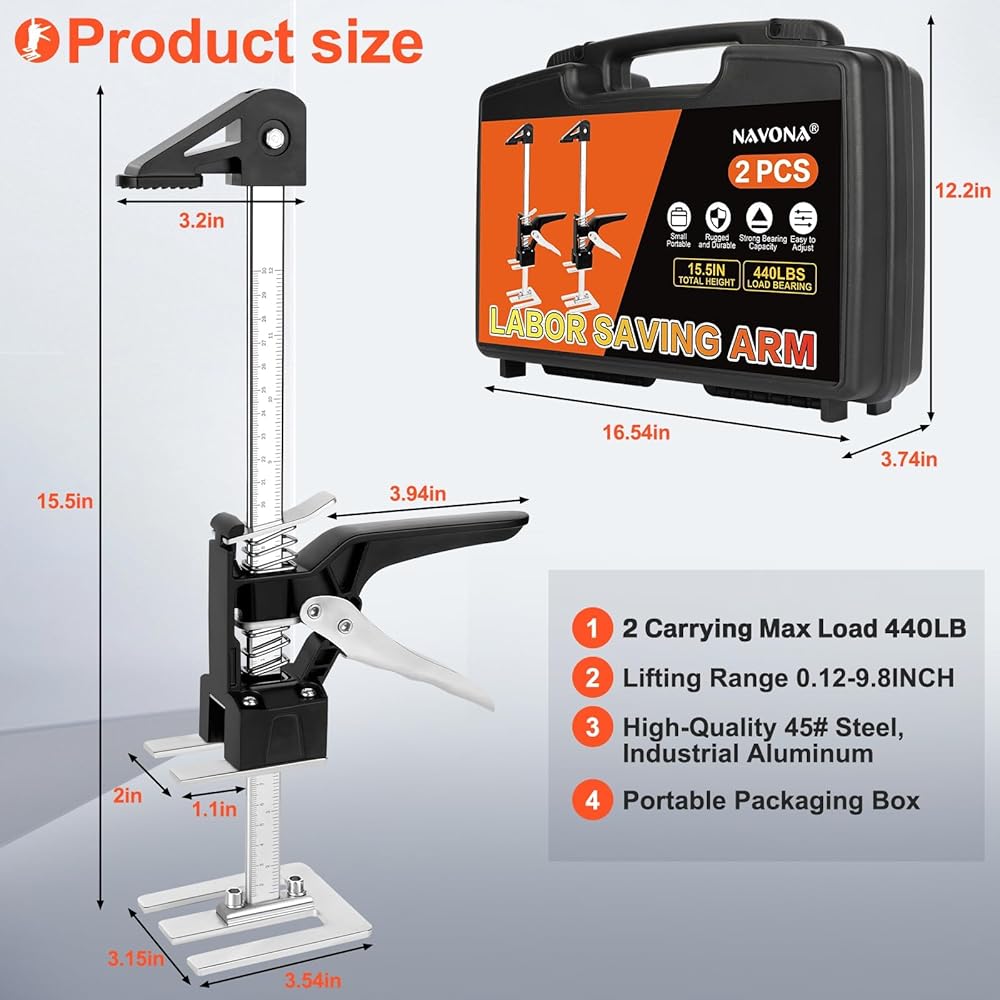 NAVONA Labor Saving Arm Lift 2 Pack, 10 Inch Multi-Function Height Adjustment Lifting Device, 400LBS Furniture Lifter for Installing Cabinets, Doors, Furniture, Windows