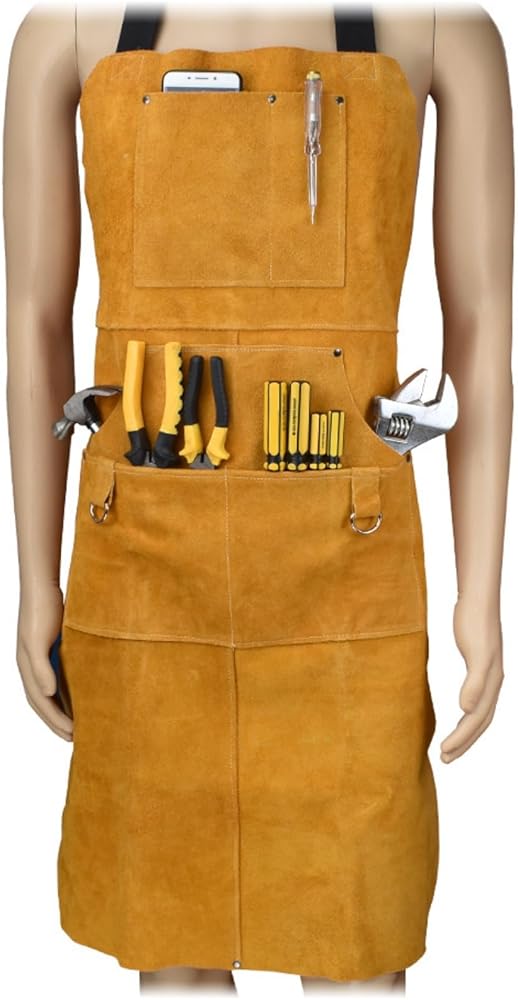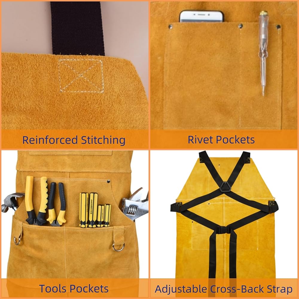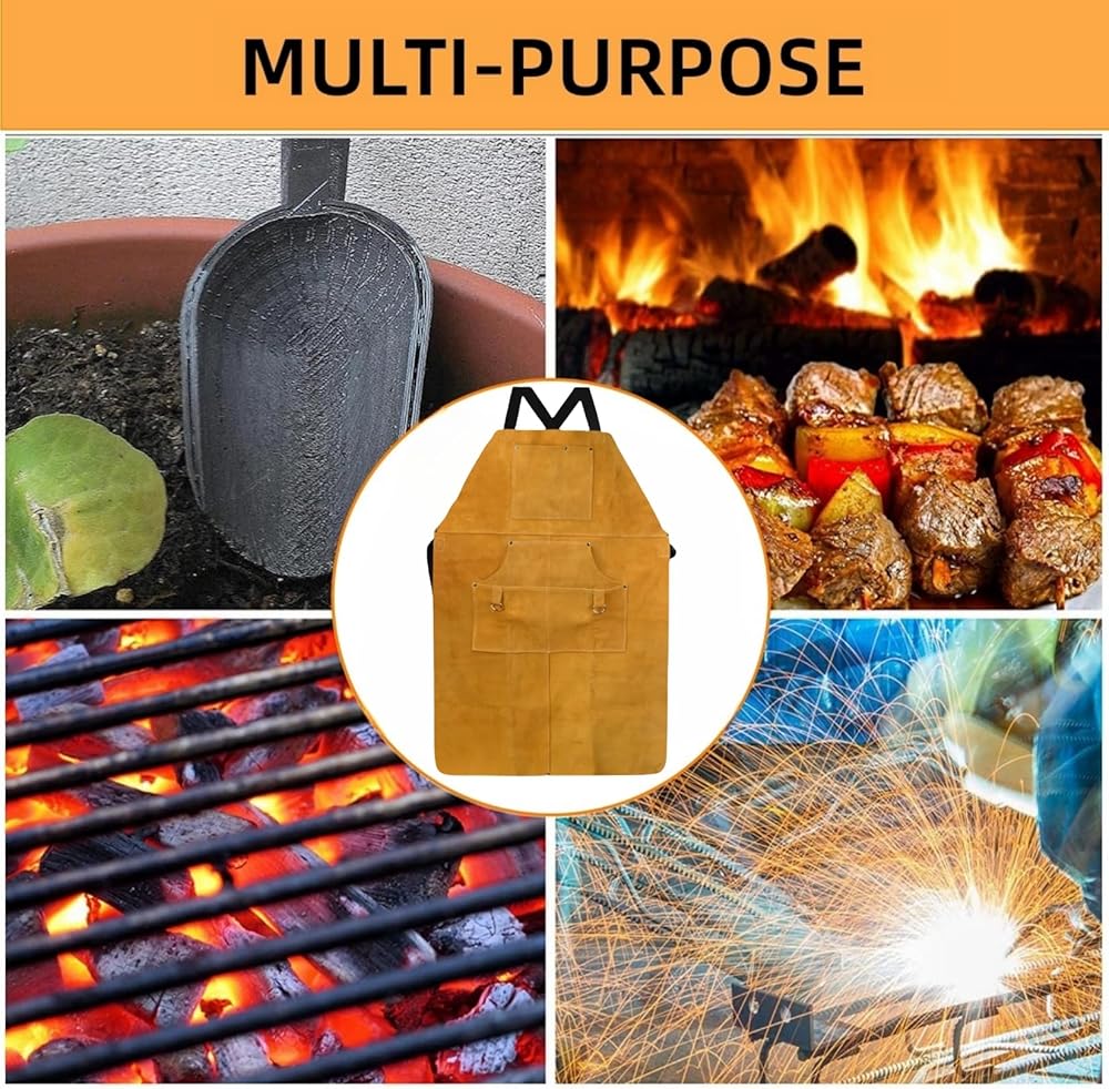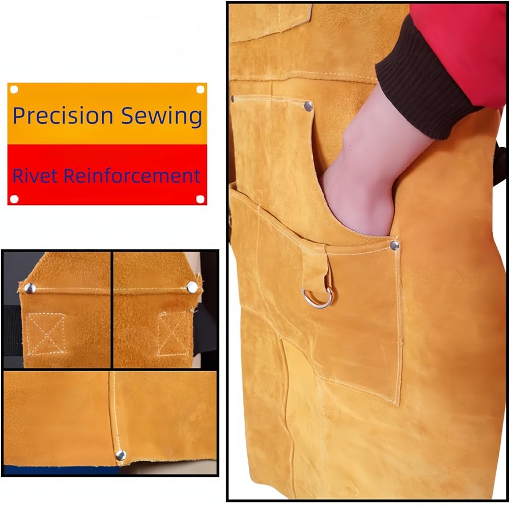 Material: Crafted from thick and durable split cowhide leather, this apron is built to withstand the toughest welding conditions.