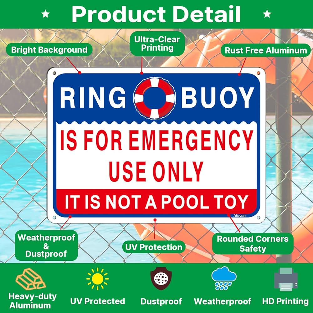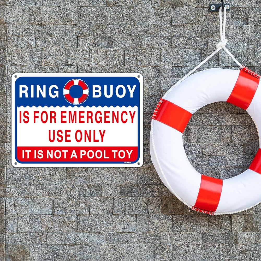 [قوي ومتين]: العوامة الحلقية مخصصة للاستخدام في حالات الطوارئ فقط، وهي ليست علامة لعبة حمام السباحة مصنوعة من مادة الألومنيوم المقاومة للصدأ. يمكن استخدام لافتة العوامة الحلقية هذه بسهولة في الهواء الطلق لمدة 7 سنوات.