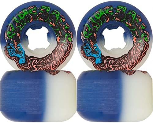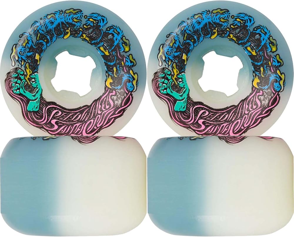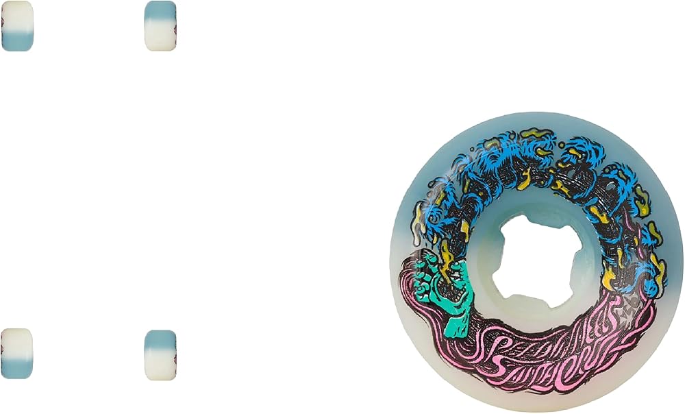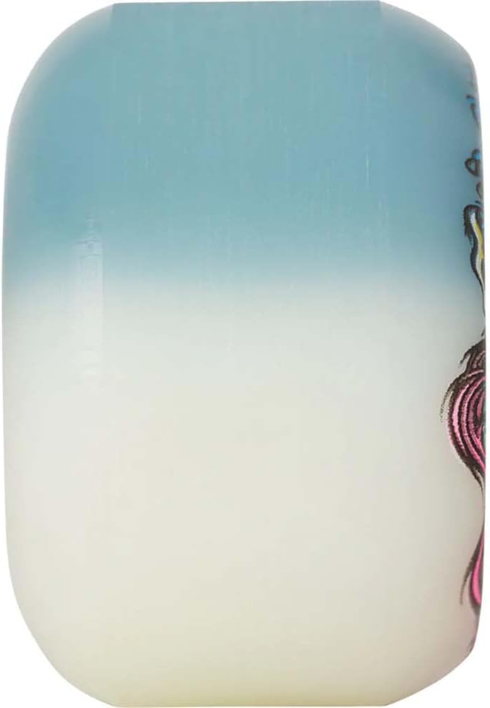 54mm 95A. Slimeballs 50-50 Hairballs wheels are dyed with vivid colors on white high performance all terrain 95a urethane and feature art by FALU based off the original art by Jim Phillips. Hairballs have a hard edge conical shape for firm lock in and wide riding surface for consistent speed and slide.