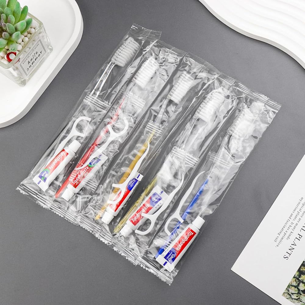 3. عبوة منفصلة: مجموعة فرش أسنان يمكن التخلص منها مغلفة بشكل فردي مع معجون الأسنان والخيط بكميات كبيرة. يتم أيضًا تعبئة خيط تنظيف الأسنان بشكل منفصل.