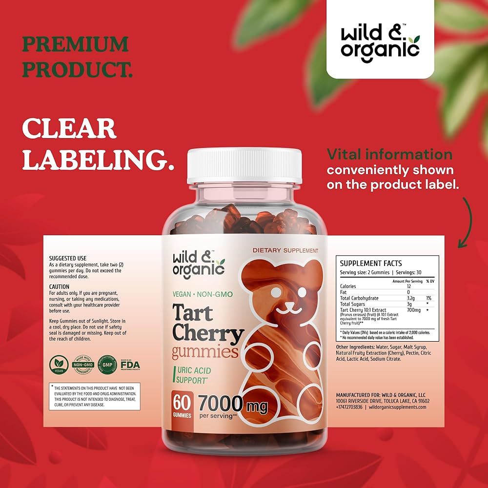 • دعم المسالك البولية والمفاصل: تحتوي كل قطعة من علكات الكرز البري والعضوي على 700 ملغ من مستخلص الكرز الحامض لدعم تنظيف حمض البوليك وصحة المفاصل.