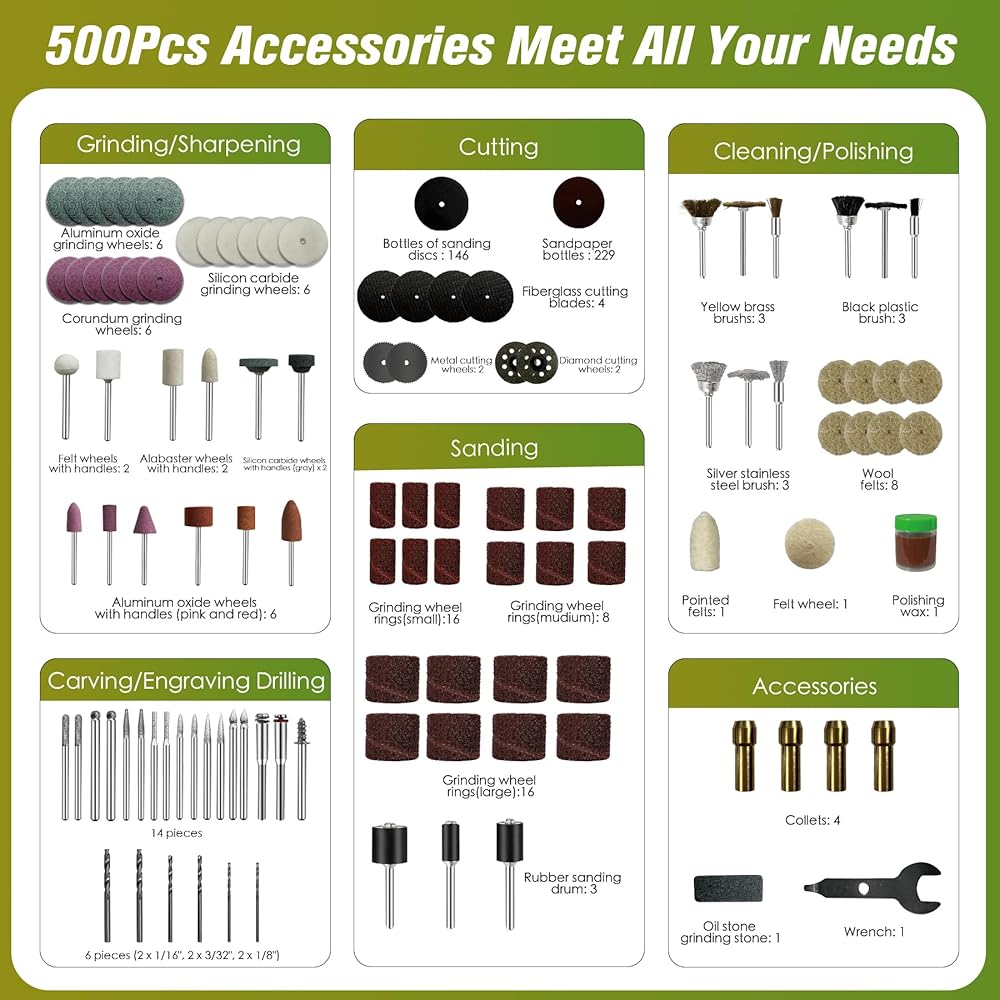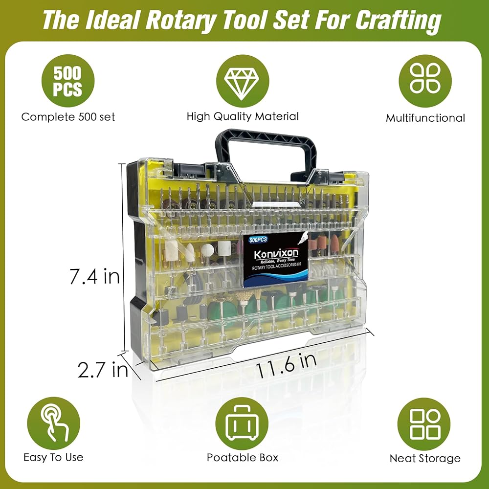 مثالية للهدايا التي تصنعها بنفسك: مجموعة ملحقات الأدوات الدوارة المكونة من 500 قطعة مثالية لصيانة المنزل والإصلاحات والحرف اليدوية والمشروعات اليدوية. إنها هدية مثالية للرجال، والأزواج، والآباء، والأصدقاء، وعشاق الحرف اليدوية، واختيار مدروس للمناسبات مثل عيد الميلاد، وأعياد الميلاد، وعيد الشكر، وعيد الأب، وعيد الأم، والمزيد.