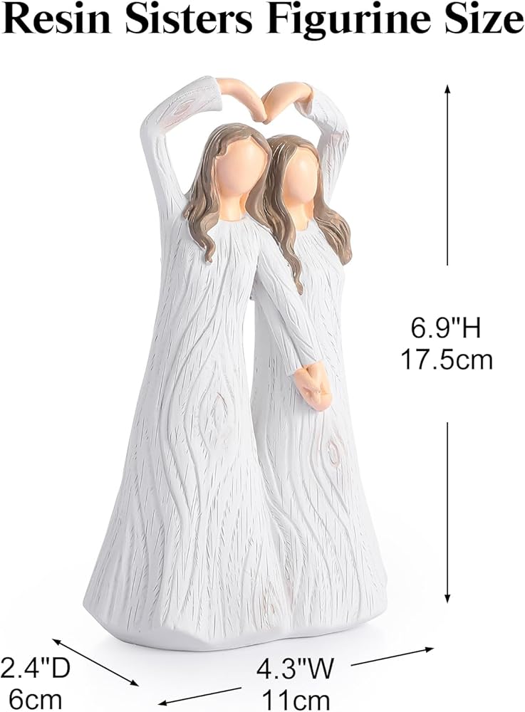 【هدية تمثال الأخوات】: قياس الارتفاع 17.78 سم، مادة الراتنج، التمثال مطلي يدويًا، مما يجعله قطعة فنية فريدة وخاصة مع لمسة وملمس مثاليين، أفضل هدية للأخوات، يمكن أن تنقل حميميتك وصداقتك بشكل جيد جدًا، نشجع بعضنا البعض، وندعم بعضنا البعض، ونحمي بعضنا البعض، هذا منتج قيم وهدية لا تقدر بثمن يمكن أن تعزز حب أي أخت.