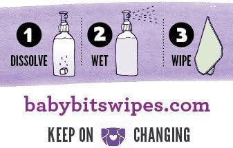 محلول مناديل بيبي بيتس هو بديل صديق للبيئة للمناديل التي تُستعمل لمرة واحدة. مع صندوق واحد فقط من رؤوس الأطفال، يمكنك عمل حل كافٍ لتبلل 1000 منديل! سهلة الاستخدام حقًا -- قم بإذابة قطعة واحدة من كل كوب من الماء الساخن في زجاجة رش أو سخان المناديل. قم برش محلول المناديل المبللة بيبي بيتس على قطعة قماش نظيفة وجافة. * صُنع في الولايات المتحدة الأمريكية!