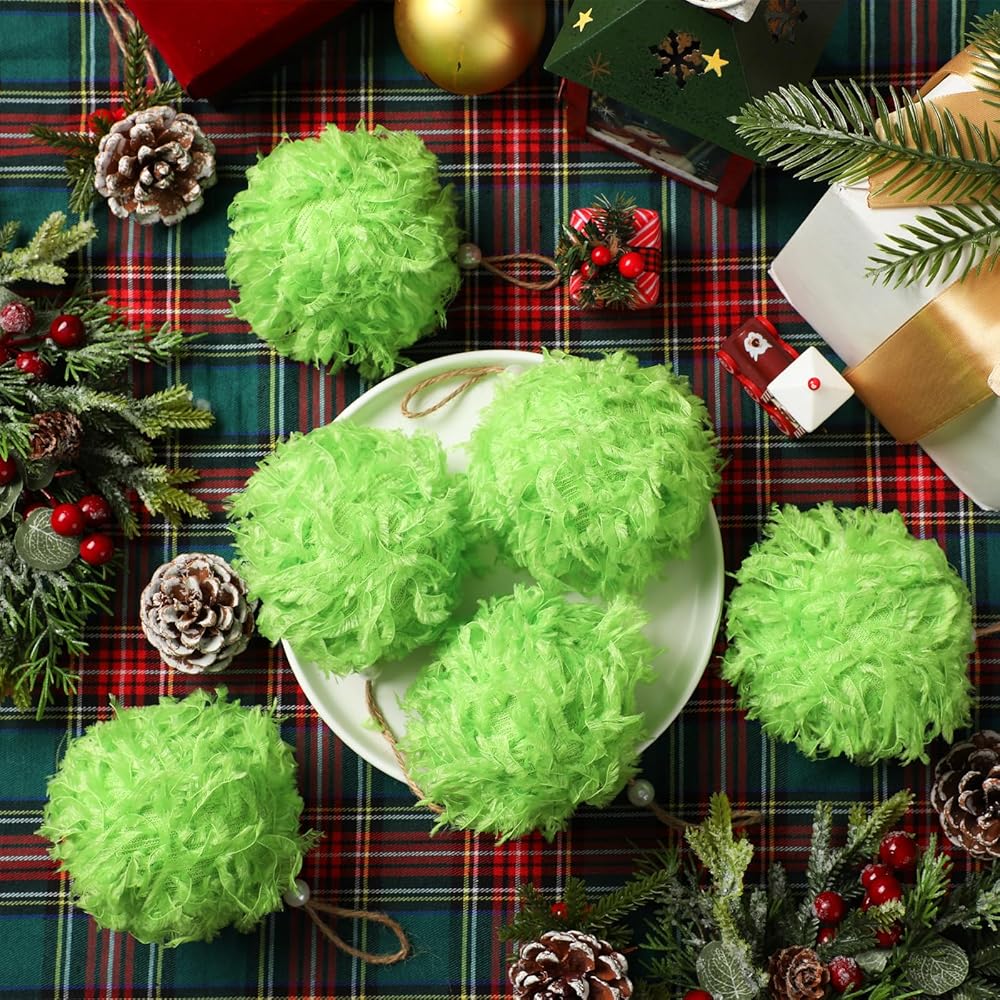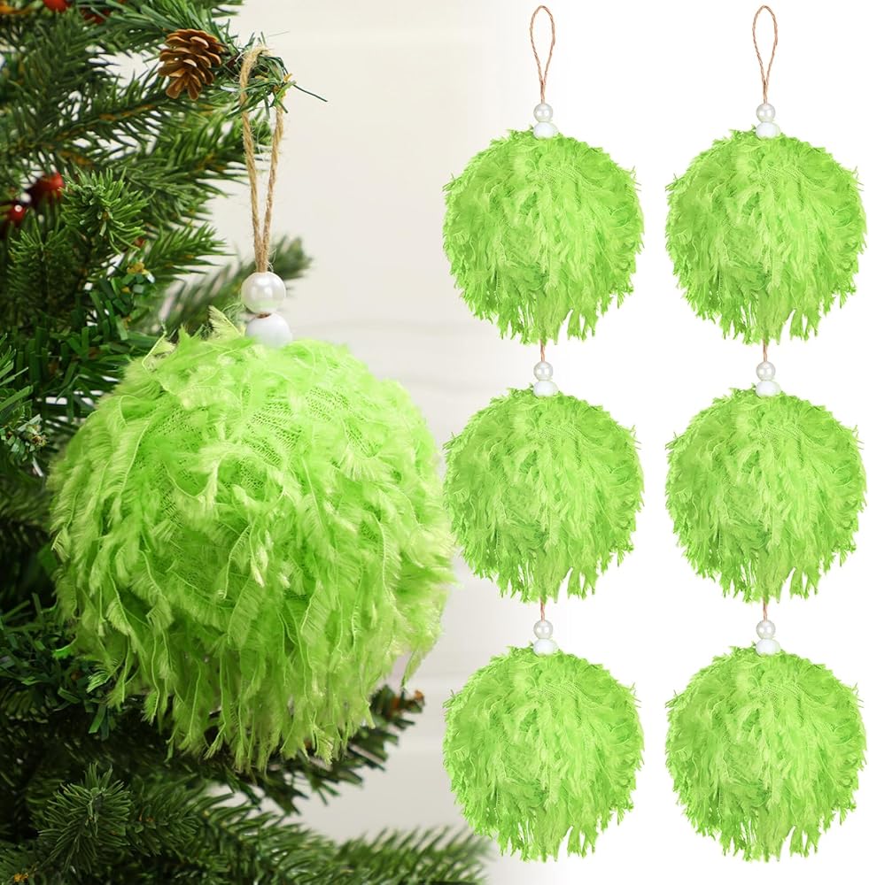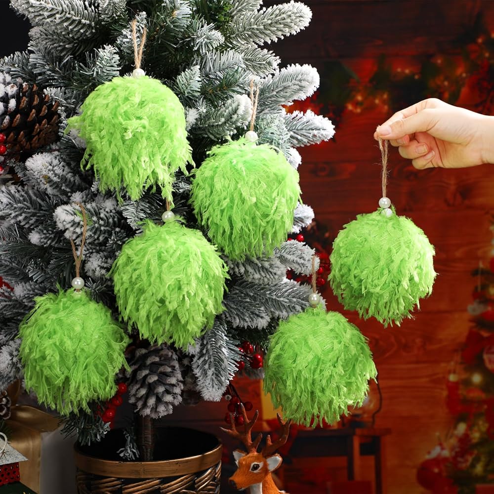 مجموعة زينة شجرة الكريسماس: تأتي عبوتنا مع 6 زينة كرات عيد الميلاد باللون الأخضر الليموني، مع تصميم فروي مناسب لتزيين المساحات الكبيرة، أو أشجار الكريسماس، أو كهدية للعائلة والأصدقاء.
