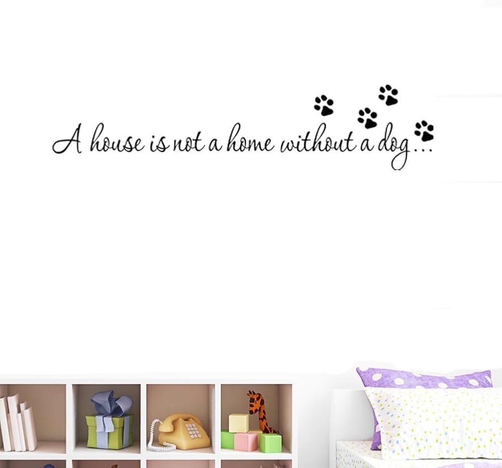 amaonm 22x6 "أسود الفينيل جدار الفن الشارات اقتباسات قائلا "المنزل ليس منزلا بدون كلب" ملصقات ديكورات جدران المنزل القابلة للإزالة جدارية طباعة مخلب ملصقات الحائط لغرفة المعيشة غرفة نوم غرفة الأطفال