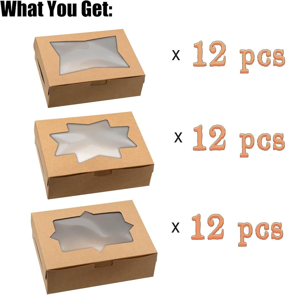 36pcs Cookie Boxes, Treat Boxes with 3 Style Window,Elevate your gift-giving game with these stylish and functional cookie boxes and treat boxes. Featuring three distinct window styles, these boxes allow you to showcase your delectable creations while protecting them from damage. Crafted with care, these boxes provide a delightful presentation for an array of treats, from homemade cookies and candies to artisanal chocolates and baked goods. Whether you're packaging favors for a special occasion, selling your confections at a local market, or simply indulging loved ones, these versatile boxes add a touch of elegance and practicality. Explore the different window designs to find the perfect match for your treats, and delight recipients with a visually appealing and thoughtful gift.