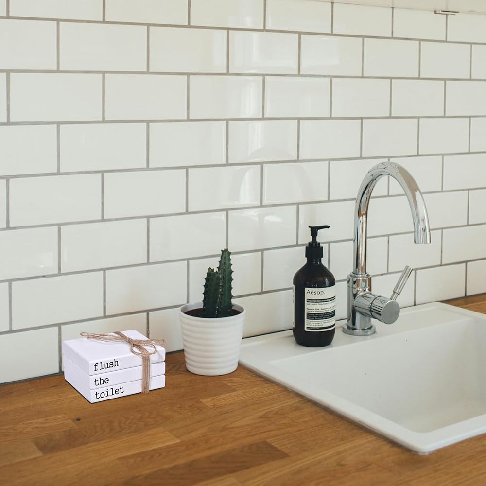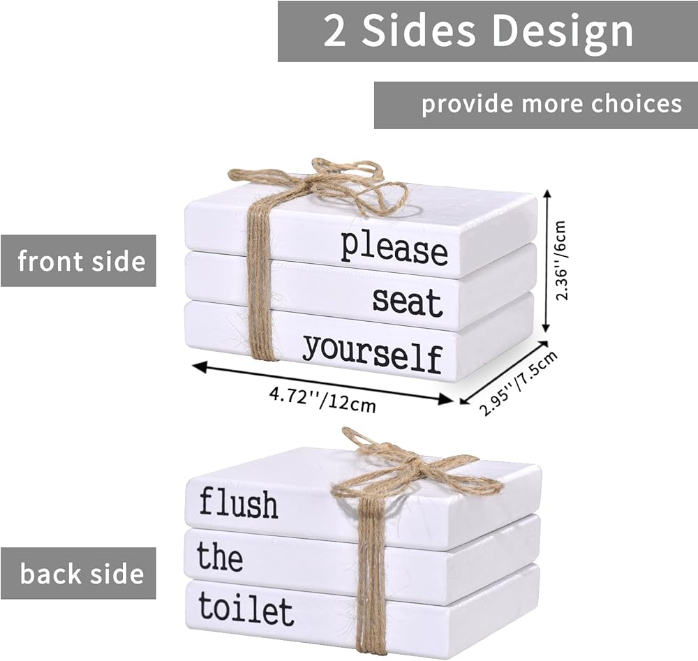 ديكور الحمام، ديكور الحمام للأرفف، ديكور المرحاض، كومة كتب صغيرة مضحكة لبيت المزرعة الخشبي للحمام، رف رف الحمام، ديكور على الوجهين، مجموعة من 3 قطع (أبيض)