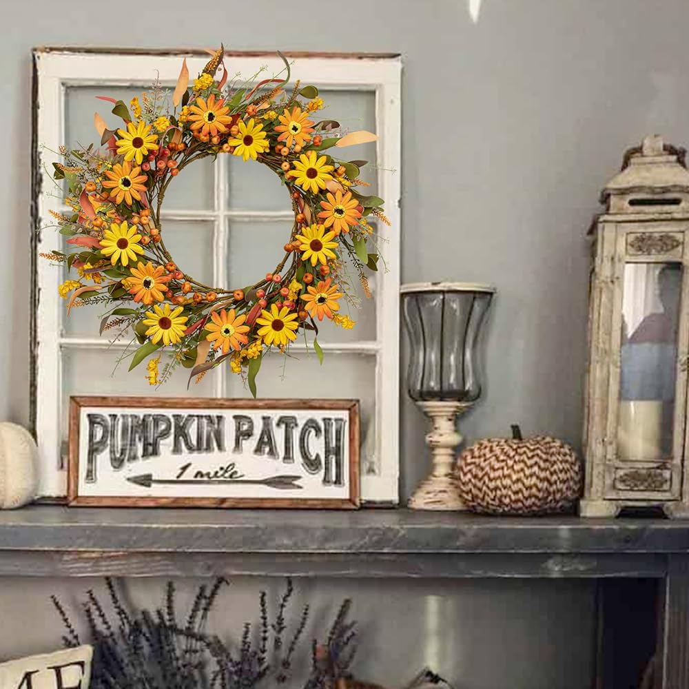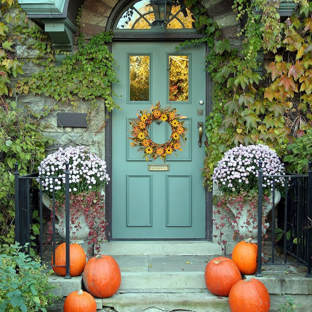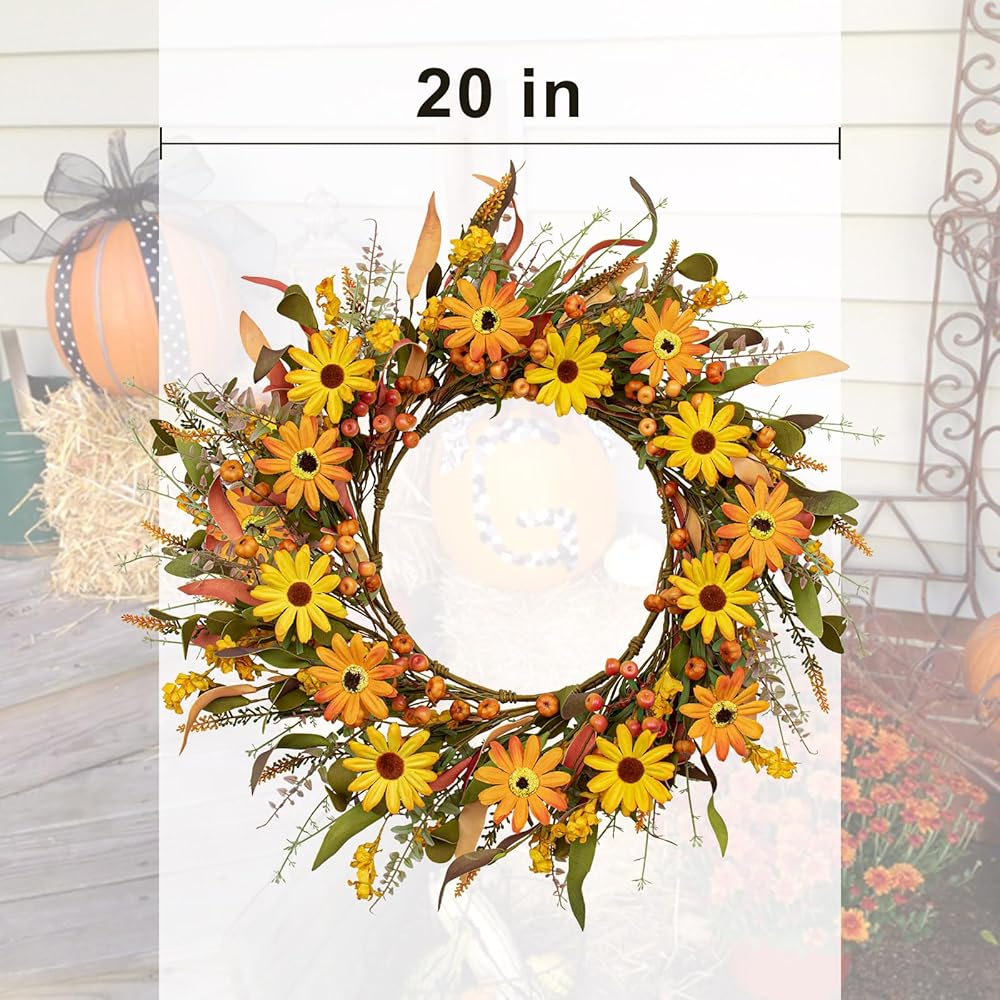 【Multiple Usage】You can hang this orange daisy wreath on front door or any door,wall,window,fireplace,porch,farmhouse,etc.It will bring a strong autumn color and harvest atmosphere to your home.This gorgeous fall front door wreath will be the icing on the cake,making your fall home decor more perfect.