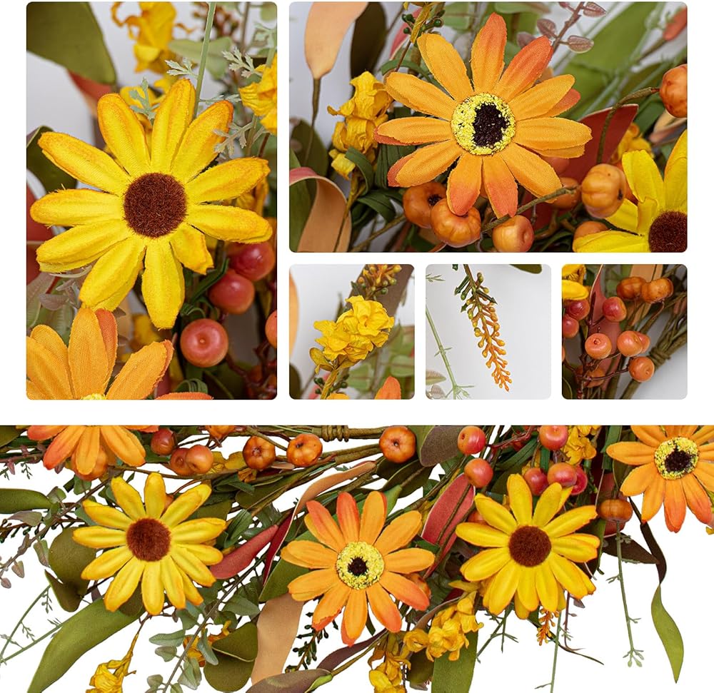 【Festival Decorations】This orange daisy wreath with berries and pumpkins can be used as fall front door wreath,harvest wreath and Thanksgiving wreath.We believe that both you and your guests will praise it when you see it.