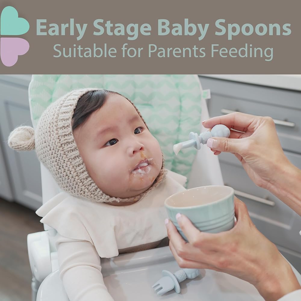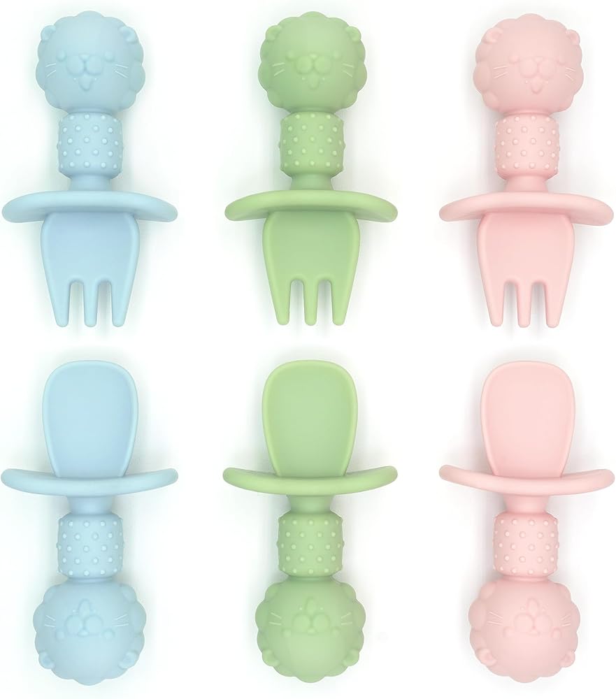 Silicone Baby Feeding Spoon and Fork Sets l Baby Led Weaning, Toddler Self-Feeding & Training l First Stage Utensils for Infant and Parent l Anti-Choke Barrier, Soft-Tip l Ultra-Durable & Chewproof l Dishwasher Safe, Boil-Proof [6 Pack]
