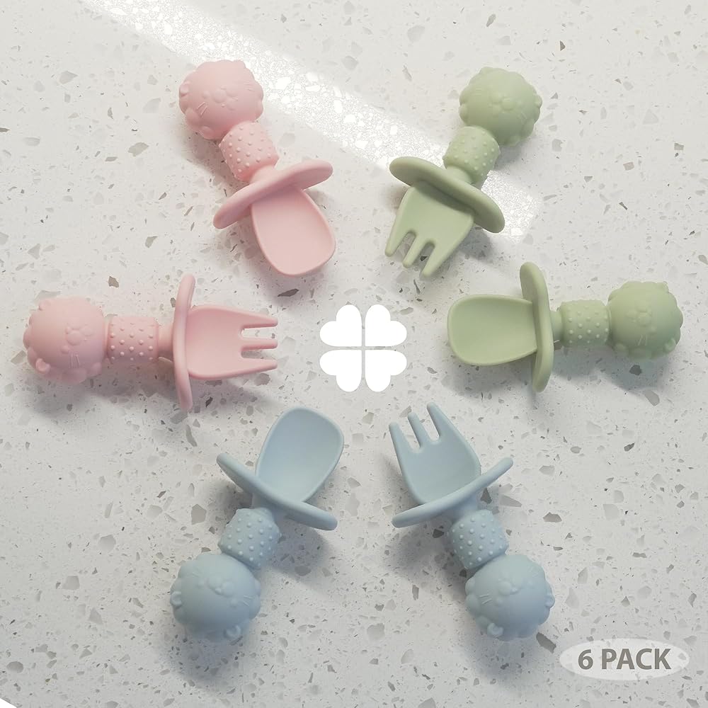 100% PREMIUM FOOD-GRADE SILICONE - Clover Clover spoon and fork sets are made from 100% premium food-grade silicone. They are free from BPA, PVC, phthalates or any other harmful additives or fillers. The ultra-durable and unbreakable soft-tip provides the right bite portion while protecting their gums and developing teeth.