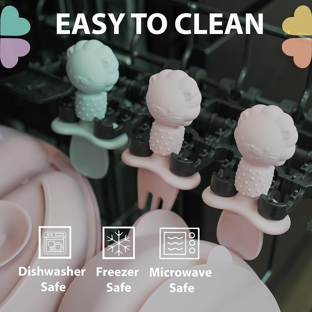 SUPER EASY TO CLEAN - Our 100% silicone spoons are designed to withstand both heat and cold temperatures, making them perfect for both hot and cold foods. They're dishwasher safe, microwave safe and boil-proof so you can toss them in the dishwasher or hand wash for a quick clean or boil them for a deeper clean. Our Clover Clover spoon & fork set makes meal time and clean-ups breeze. You'll love them! Money Back Guaranteed.