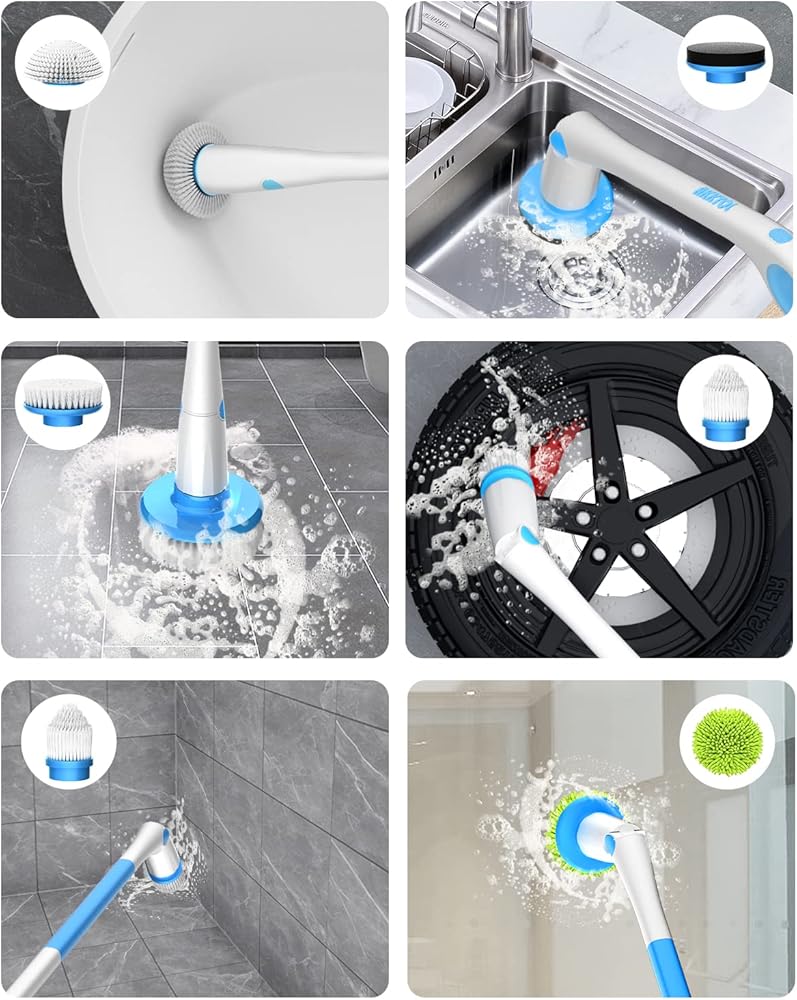 【6 رؤوس فرشاة مقاومة للماء IPX7 قابلة للاستبدال】يمكن لجهاز التنظيف الكهربائي تنظيف حوض الاستحمام والحمام والأرضيات والزاوية والزجاج والمشاهد الأخرى بشكل فعال. بغض النظر عن الموقع المستهدف، من السقف إلى زوايا الأرض، ستجد دائمًا الفرشاة المثالية لتنظيفه. بالإضافة إلى ذلك، يبدو المنتج مناسبًا للتخزين باستخدام خطاف التعليق المرفق.