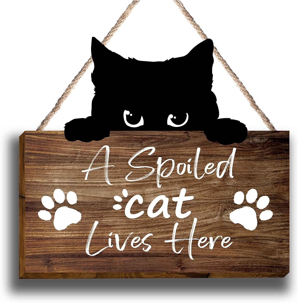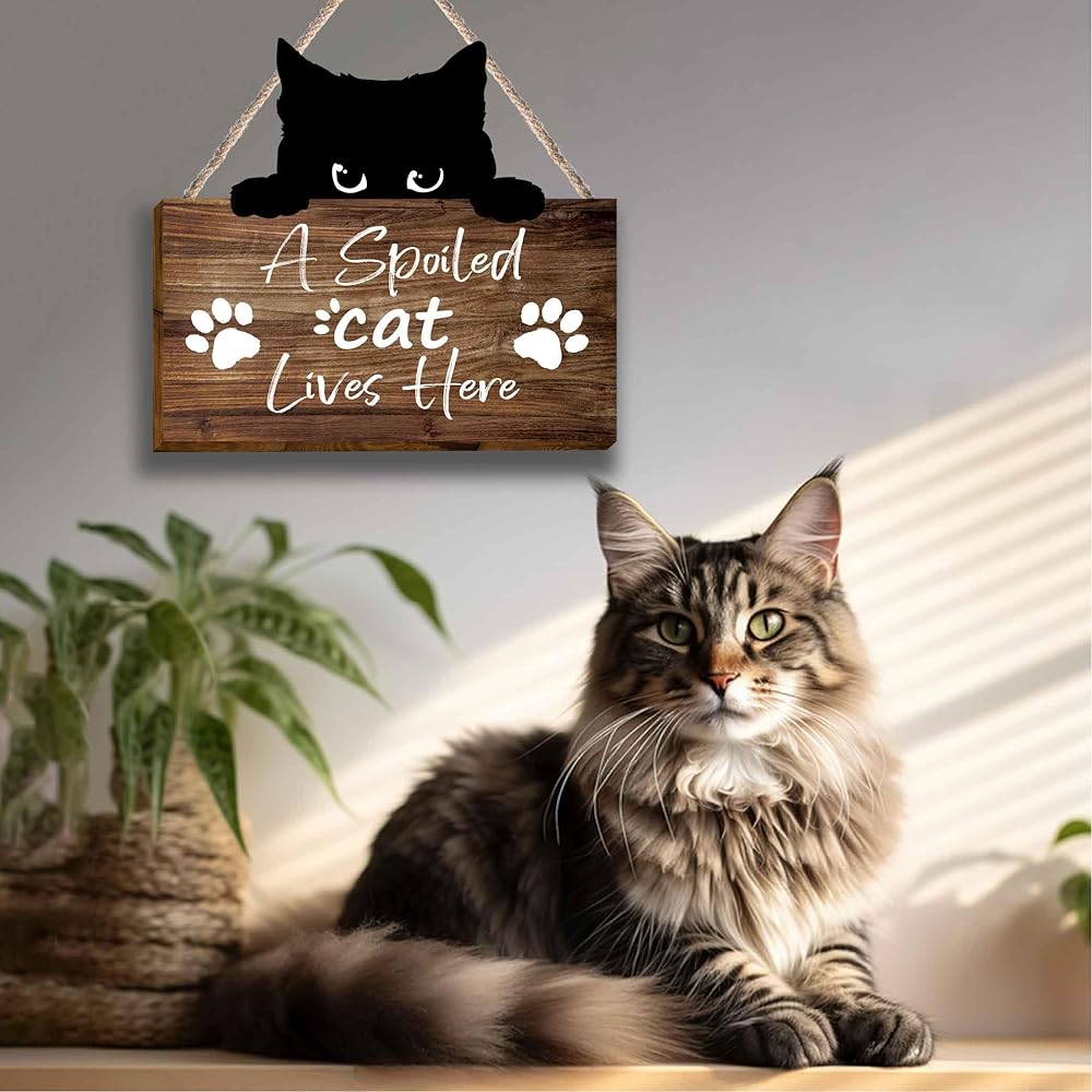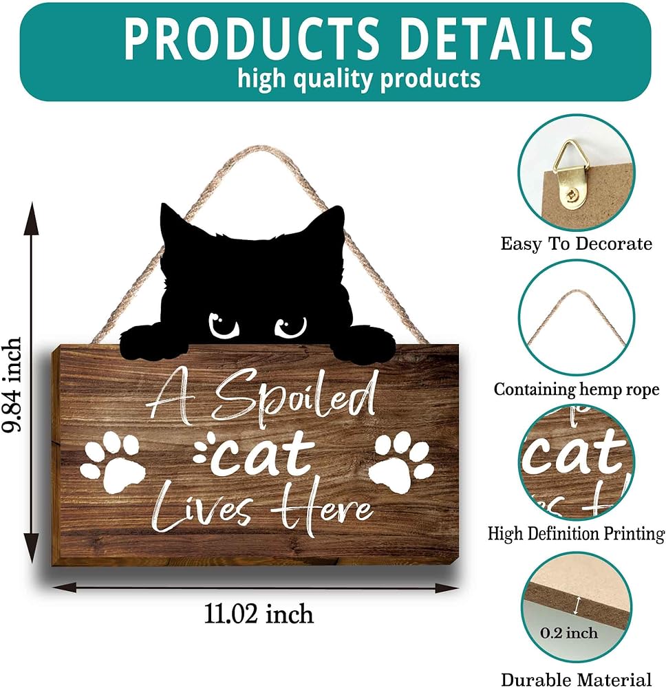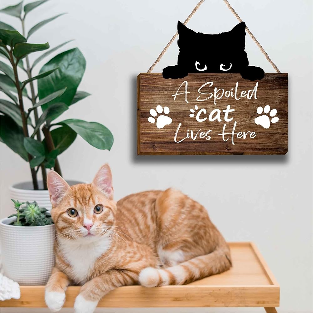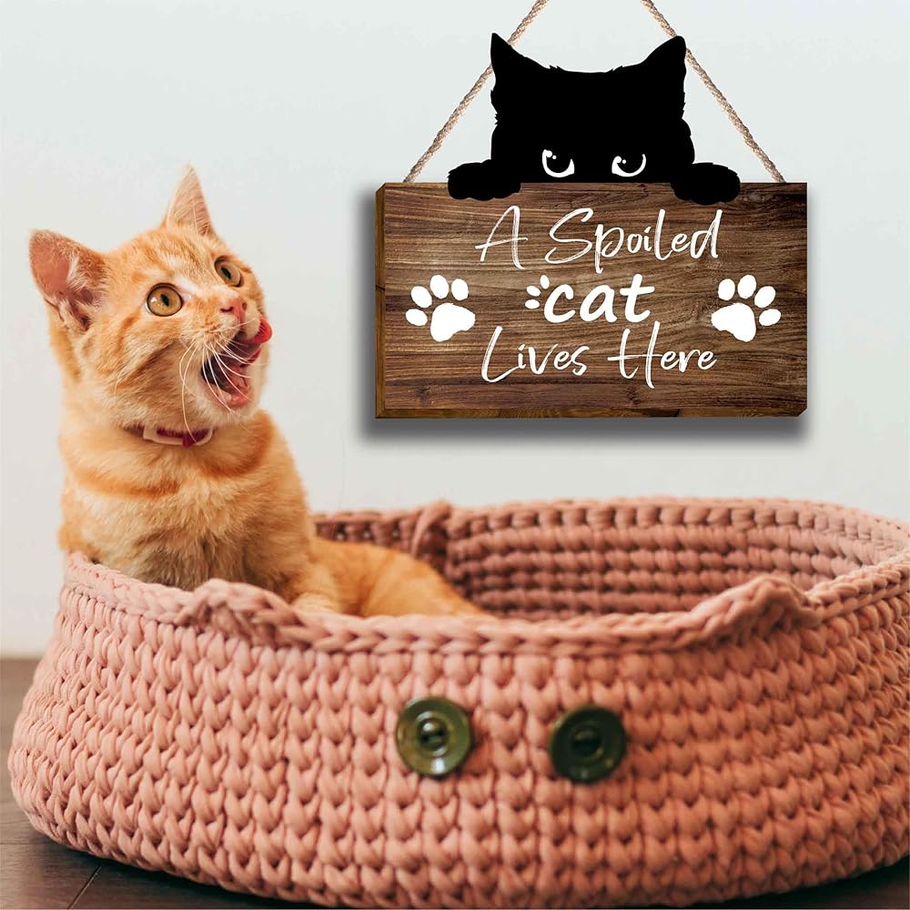 علامة خشبية مضحكة للقطط، هدايا لمحبي القطط للنساء، هدايا لمحبي القطط، قطة مدللة تعيش هنا معلقة مطبوعة على الحائط لوحة خشبية، لوحات جدارية معلقة على شكل قطة مضحكة لمحبي القطط والقطط والأم المراهقات والنساء والرجال-31