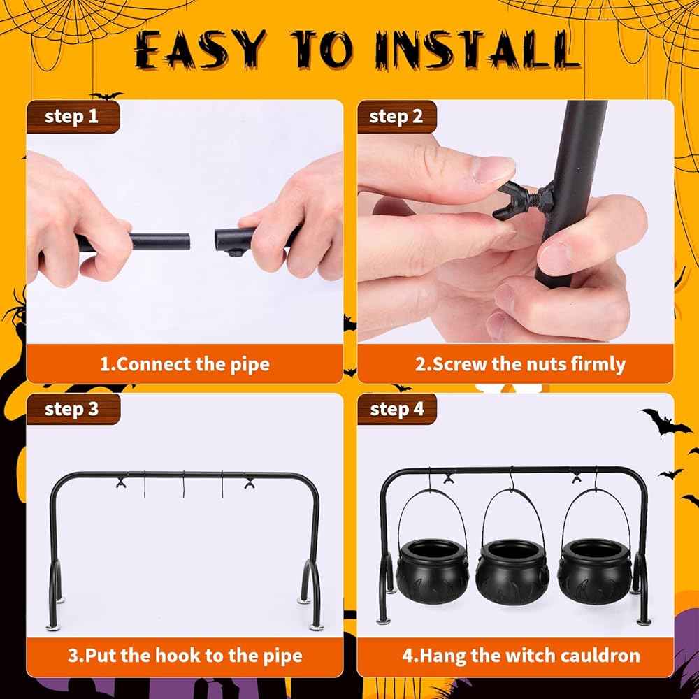 【سهلة التجميع】مرجل ساحرة الهالوين يناسب كثيرًا، لذا فإن الإمكانية لا حصر لها حقًا. كما أنها سهلة التجميع والتفكيك لأغراض التخزين. وهذا يجعل استضافة احتفالات الهالوين سهلة وصديقة للبيئة.