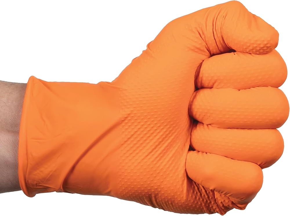 القفازات البرتقالية: اللون البرتقالي القزحي يجعل من السهل الرؤية في البيئات المظلمة ويساعد على تحسين السلامة أثناء العمل.
