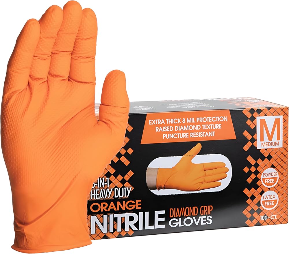 قفازات النتريل شديدة التحمل: توفر قفازات النتريل السميكة للغاية 8 مل أفضل حماية ضد المواد الكيميائية والشحوم والسخام والطلاء والبنزين.