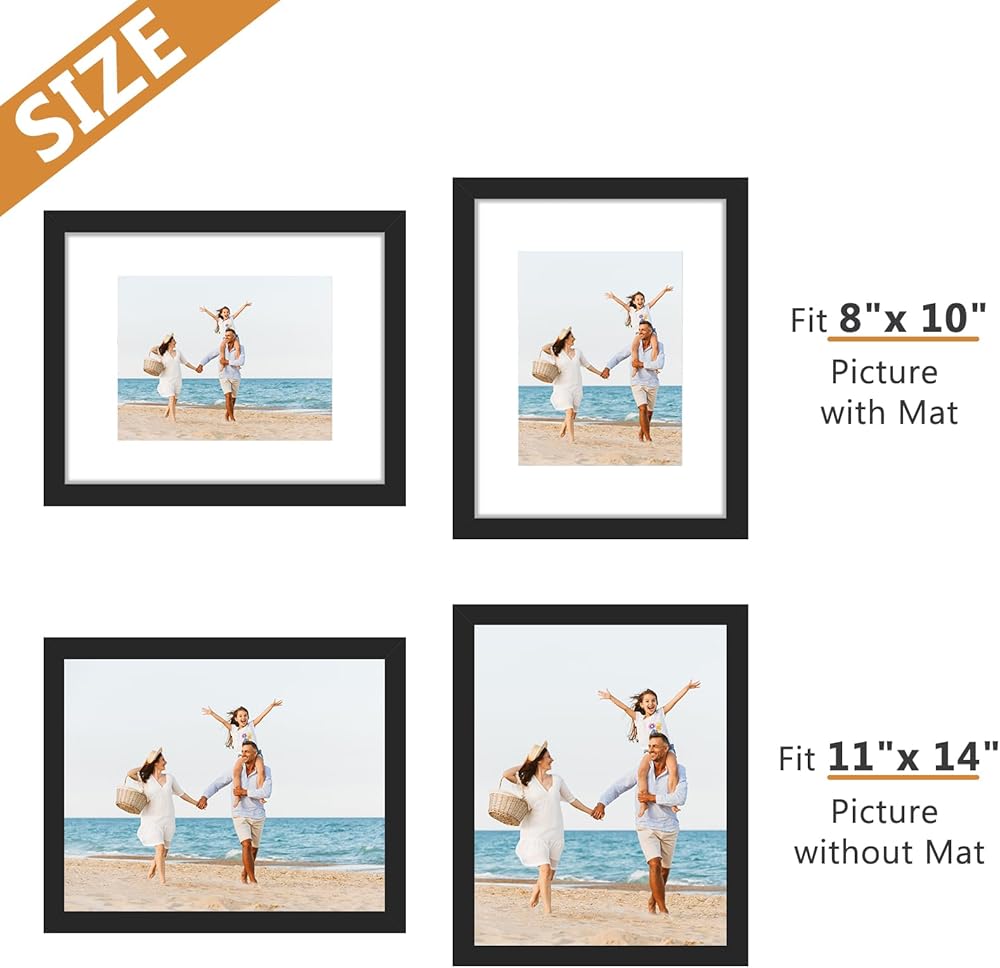 11x14 Picture Frame Black, Display Pictures 8x10 with Mat or 11x14 Without Mat for Wall Mounting, 1 Pack