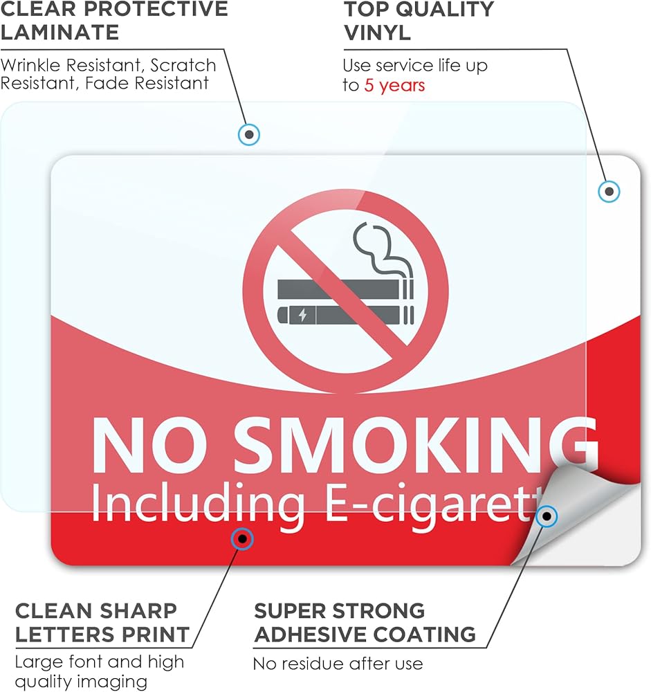 ✅EASY TO IDENTIFY: No Smoking Signs for Business are make sure that your guest and employees know this is a Smoke Free Area. These stickers notify visitors and reminds employees of your smoking policies. Perfect for business, offices, schools, public places and more.