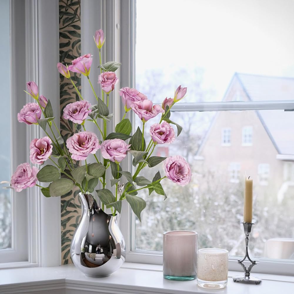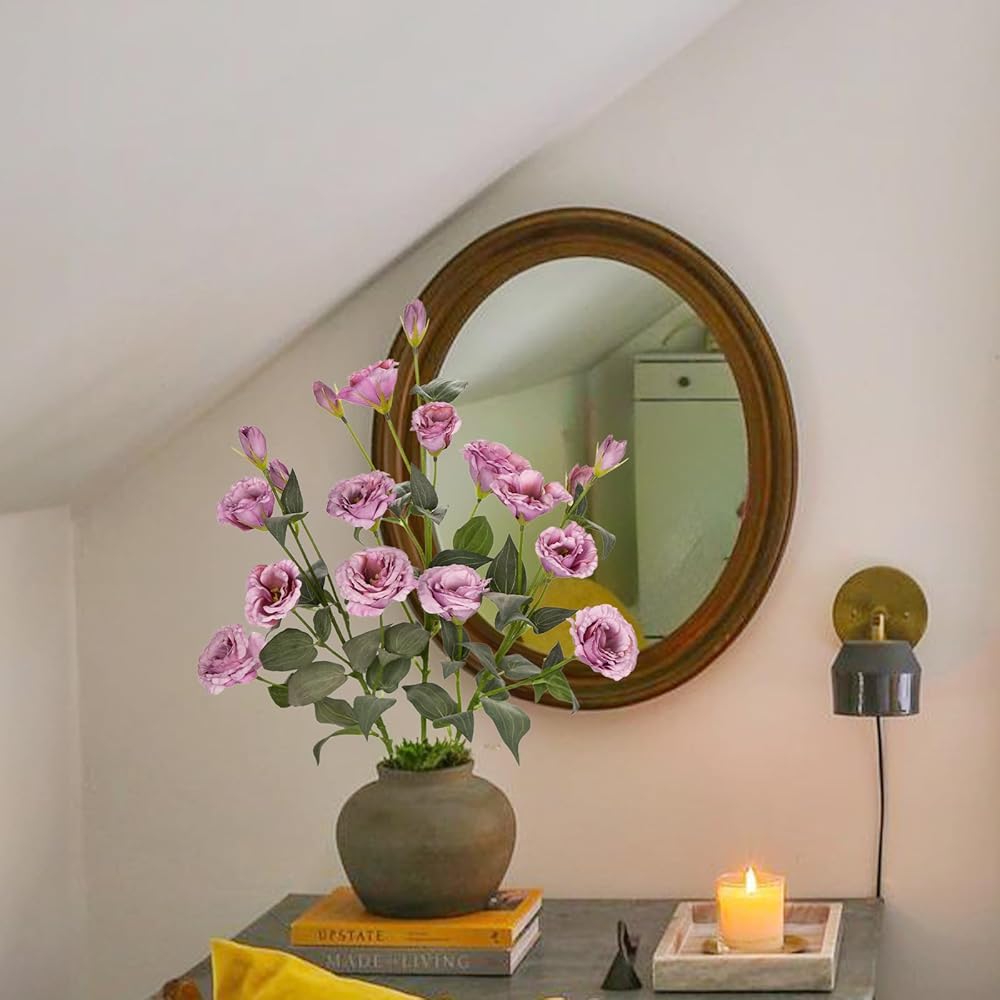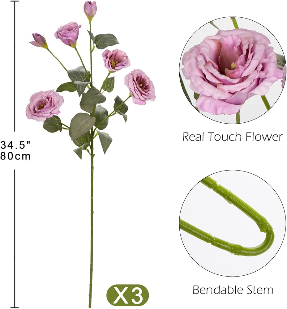 34.5 بوصة زهور اصطناعية أرجوانية حريرية وهمية 3 قطع زهور يوستوما ليسيانثوس مع فرع ترتيب زهور صناعية طويل الجذع مع 4 رؤوس DIY لحفلات الزفاف المركزية باقة ديكور المنزل