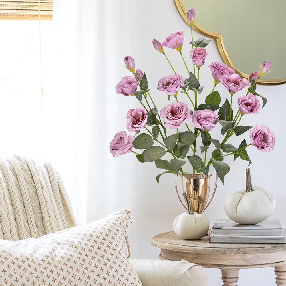 🌷✨【الخامة: أوراق زهور إيستوما ليسيانثوس الصناعية مصنوعة من الحرير عالي الجودة وبتلات الزهور مصنوعة من حرير قوي ومتين، مع لمسة حقيقية وأوردة شفافة. تم اعتماد تقنية رش الألوان لخلق لون طبيعي في بتلات الزهور. أكثر واقعية بسبب التفاصيل!