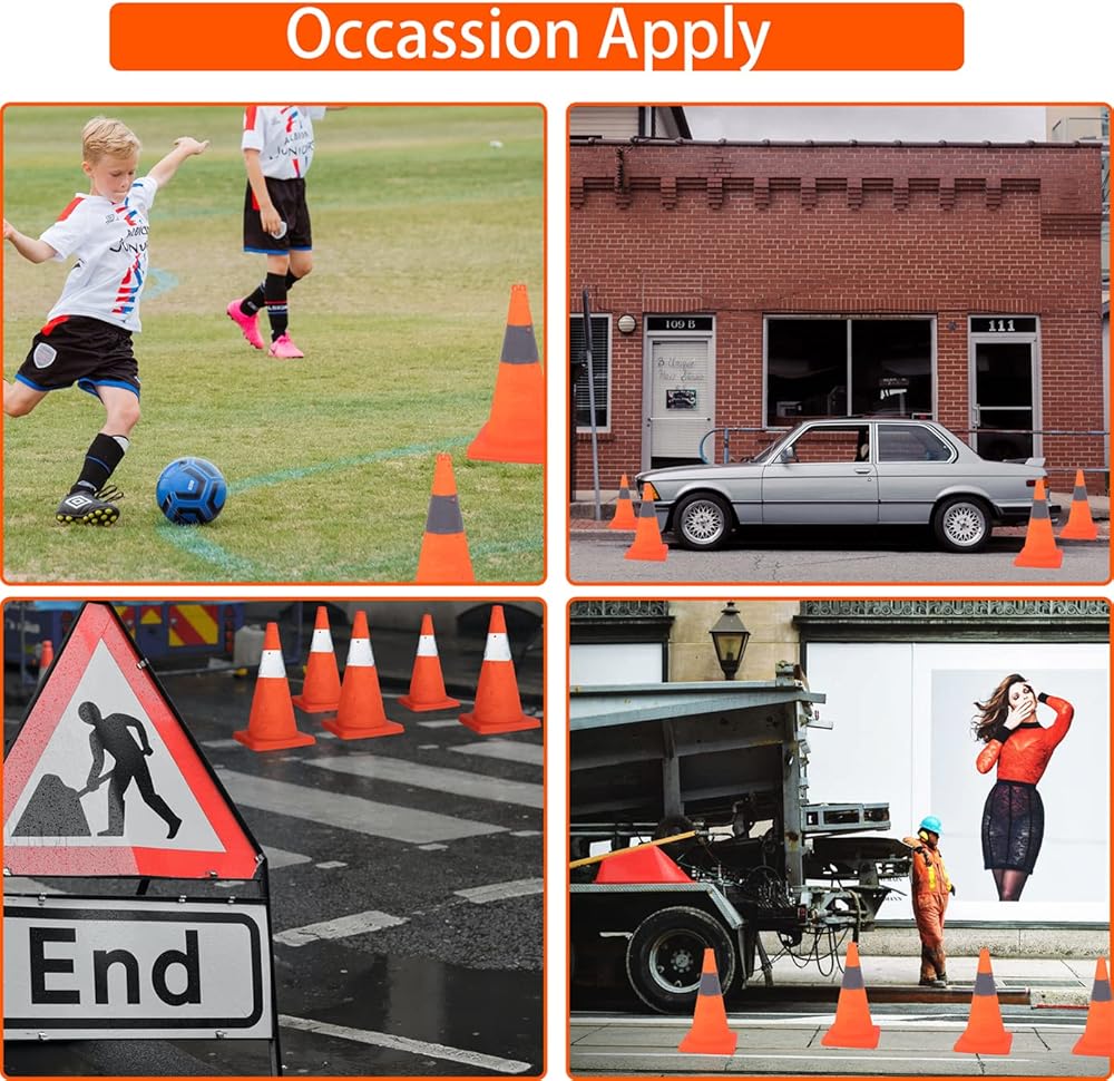 • إعداد سريع وسهل - التصميم القابل للطي لمخاريط المرور هذه يجعلها سهلة الإعداد والإزالة. ما عليك سوى الضغط على الجزء العلوي لطيها، ثم اسحبها للأعلى عندما تحتاج إليها مرة أخرى. وهذا يجعلها مثالية للاستخدام في حالات الطوارئ أو للتحكم السريع في حركة المرور