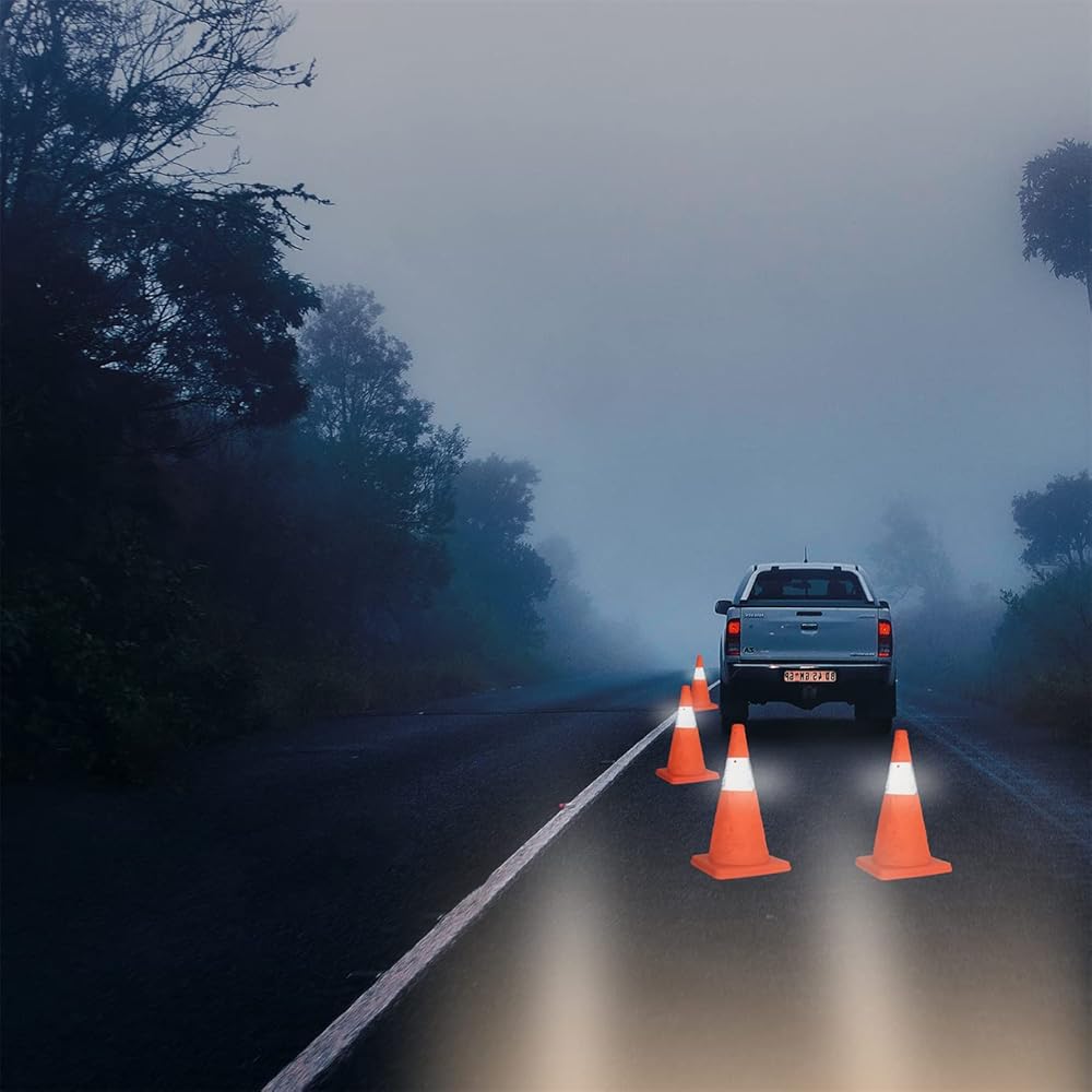 • واضحة للغاية وعاكسة للضوء - مع شريط عاكس كبير مقاس 10.16 سم 360 درجة ولون برتقالي ساطع، تكون مخاريط الأمان هذه مرئية للغاية من مسافة تصل إلى 800 قدم. تعمل الأشرطة العاكسة أيضًا على تشتيت الضوء من المصابيح الأمامية والمصابيح الكاشفة وأضواء الهاتف، مما يضمن سهولة اكتشافها في أي حالة