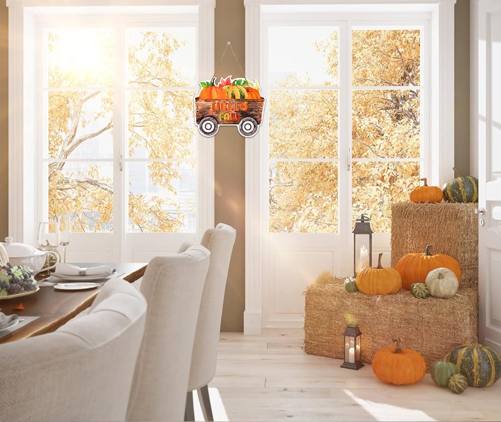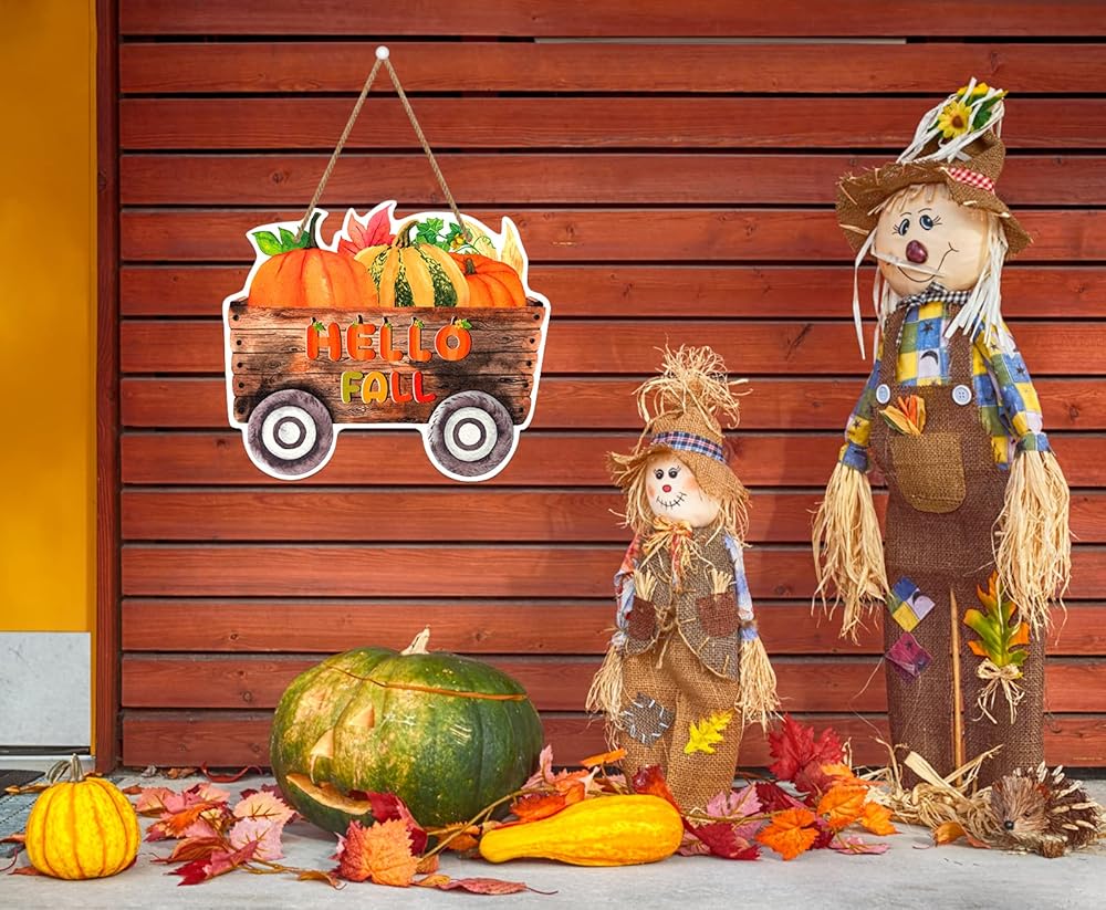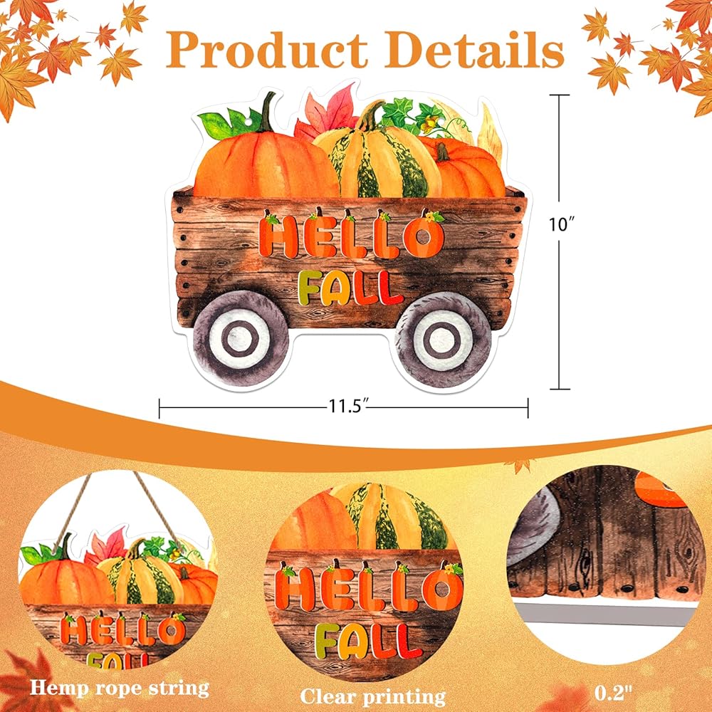 • 【علامة ديكور باب الخريف】: علامة ديكور الخريف على شكل قرع المزرعة بمقاس 8.5 بوصة × 14 بوصة، حجم مثالي أكاليل باب الخريف زينة الخريف لشرفة الباب الأمامي للمنزل. كل علامة ترحيب في الخريف تأتي مع سلسلة حبل من القنب لسهولة التركيب. قم بتحويل منزلك في ملاذ مريح لبيت المزرعة، مزين بأزهار التماثيل المبهجة، مما يلتقط جوهر الخريف.