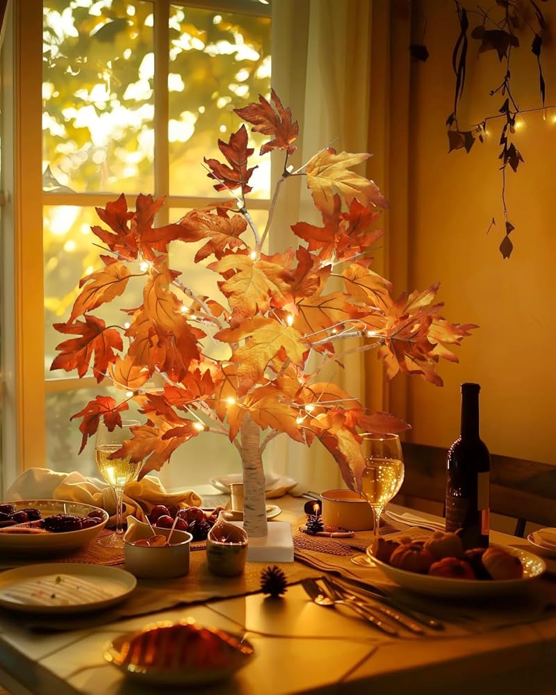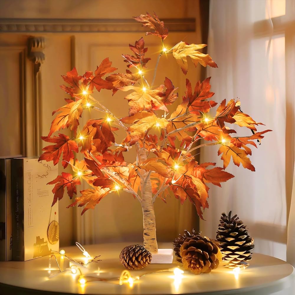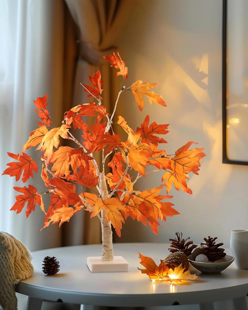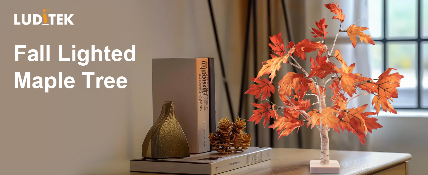 Luditek سقوط الديكور شجرة القيقب تضيء شجرة ث / 24 أدى 22 بوصة بطارية شجرة الخريف البيضاء تعمل لعيد الشكر زينة عيد الهالوين للمنزل داخلي في الهواء الطلق طاولة غرفة النوم