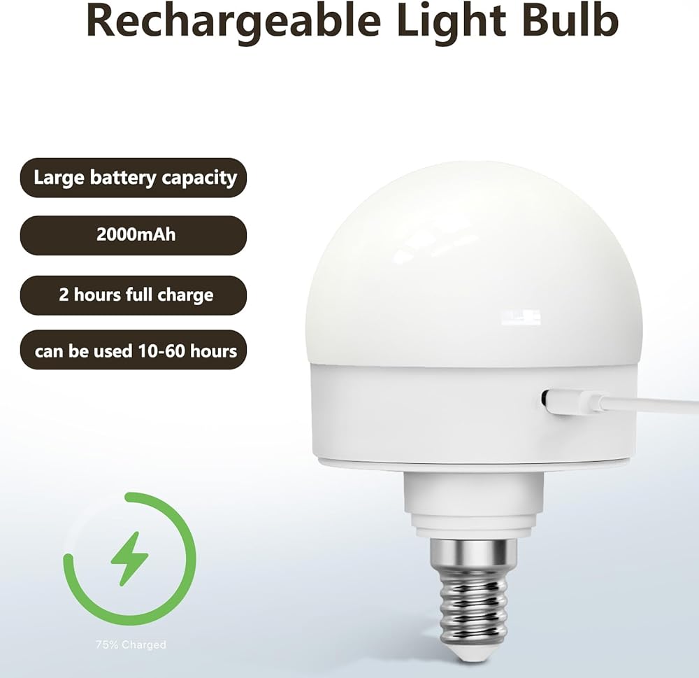 لمبة إضاءة قابلة لإعادة الشحن: تأتي هذه المصباح الكهربائي الذي يعمل بالبطارية بسعة بطارية كبيرة 2000 مللي أمبير في الساعة، مع ميزة شحن قابلة للفصل ويمكن استخدام الشحن الكامل لمدة ساعتين من 10 إلى 60 ساعة. سيكون أفضل مصباح طوارئ لانقطاع التيار الكهربائي والتخييم والمشي لمسافات طويلة.
