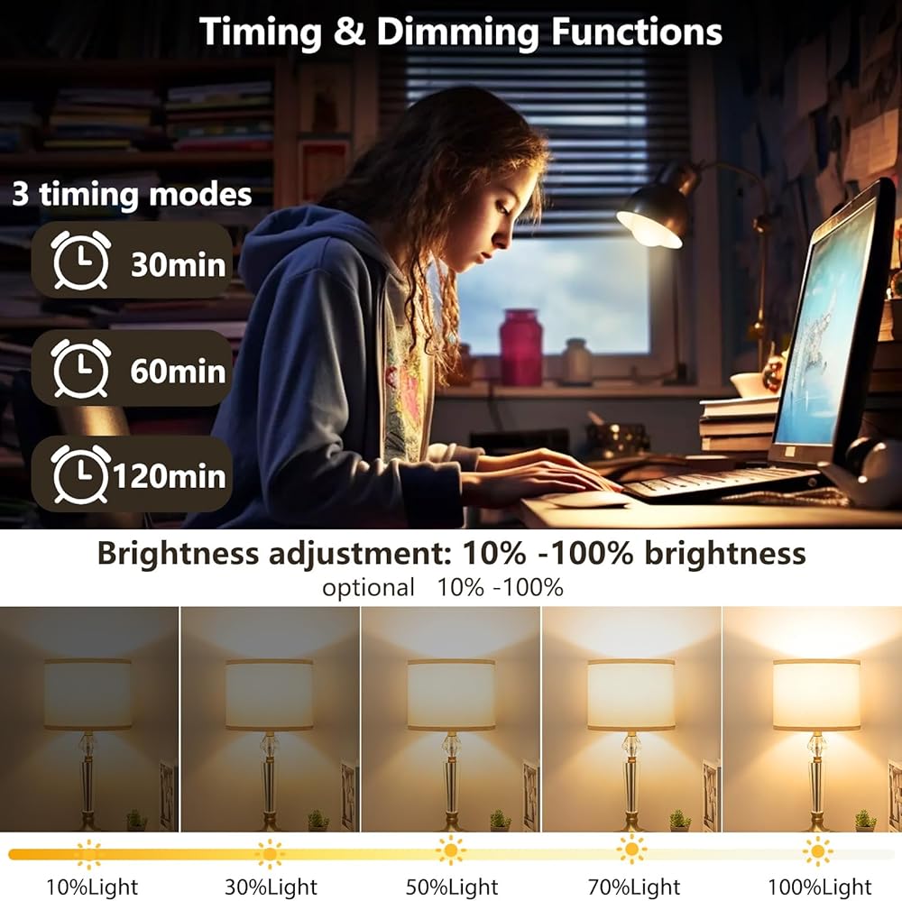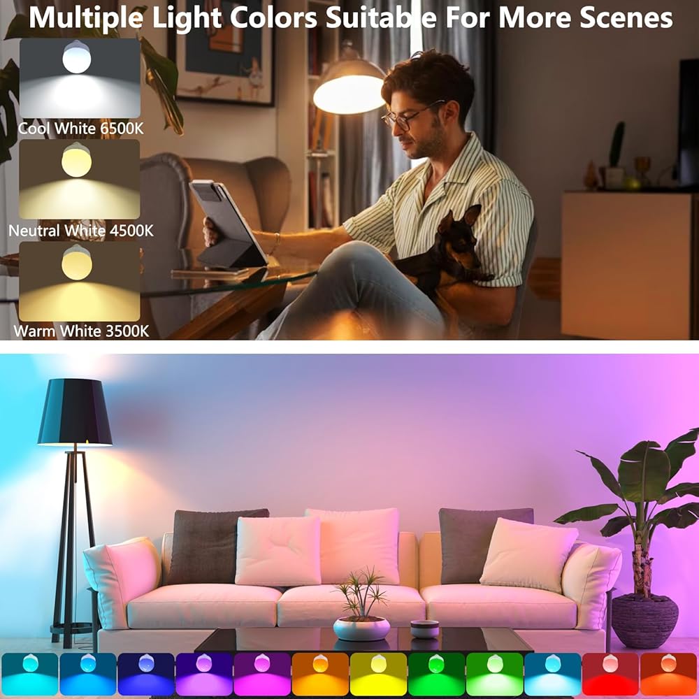 وظائف التوقيت والتعتيم: تحتوي لمبة الإضاءة هذه على وظائف التوقيت والتعتيم. هناك 3 أوضاع توقيت 30 دقيقة/60 دقيقة/120 دقيقة و10% -100% سطوع اختياري.