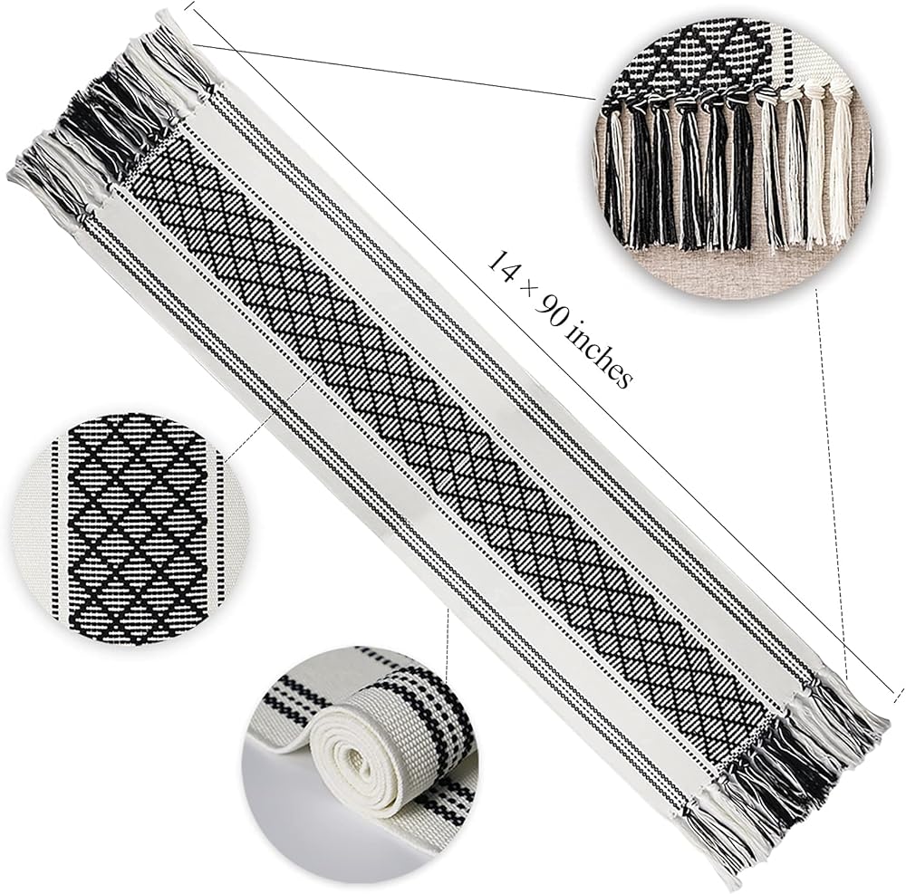 تغطية مثالية للطاولة: يبلغ طول مفارش الطاولة بوهو 35.56 × 182.88 سم (بما في ذلك الشرابات/الشراشيب) وهي إضافة رائعة لأي ديكور حديث لغرفة الطعام. يناسب طاولة طعام تتسع لـ 4-6 أشخاص، مما يخلق إعدادًا رائعًا للطاولة.